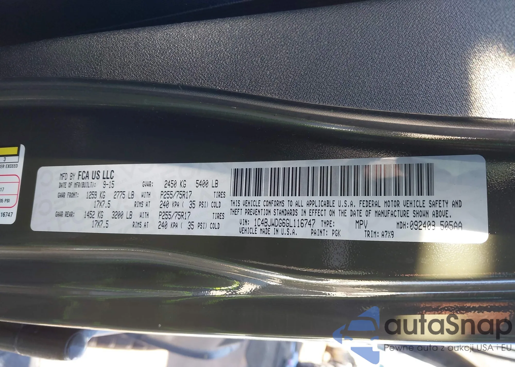 • VIN 1C4BJWDG6GL116747