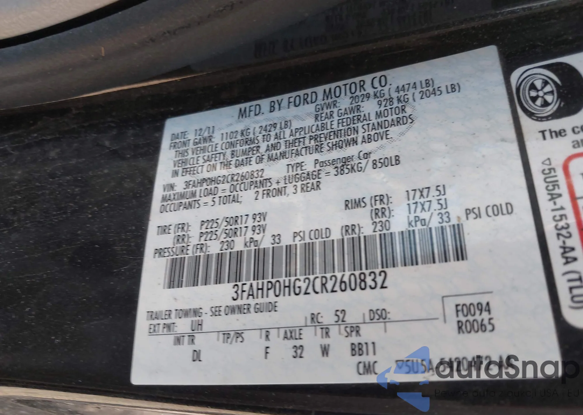 LOT: 42361955 VIN: JHMFA3F2XAS003400