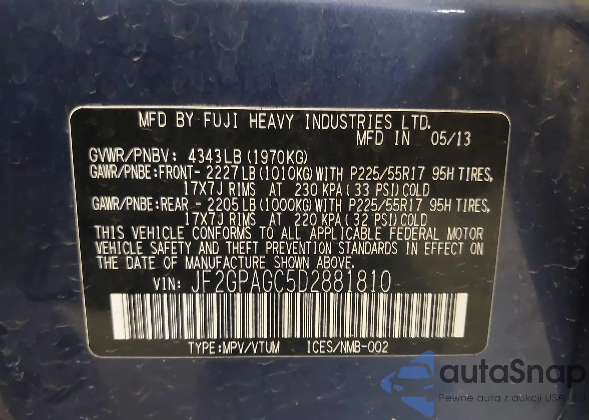 LOT: 42196106 VIN: JF2GPACC6E8271113