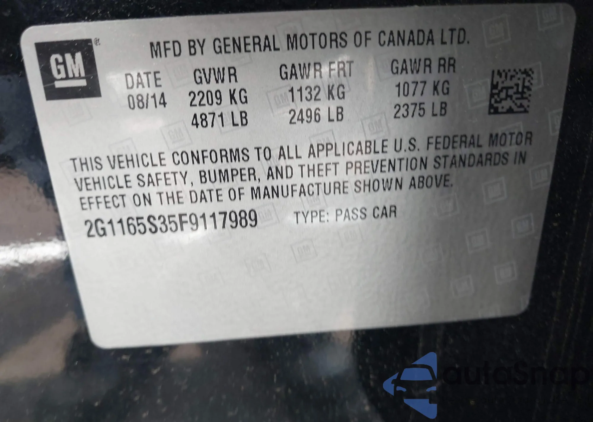 • VIN 2G1165S35F9117989