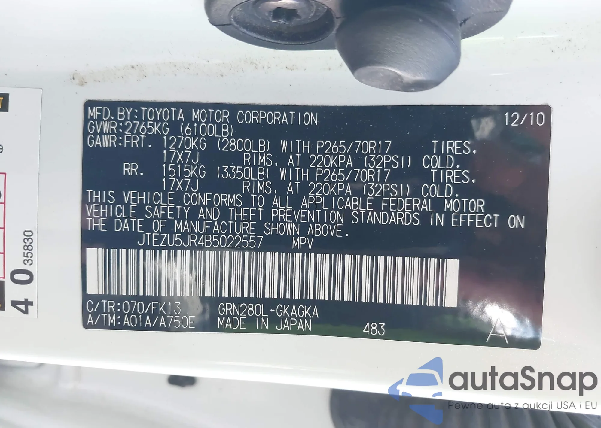 • VIN 4T1BF1FK1EU422702