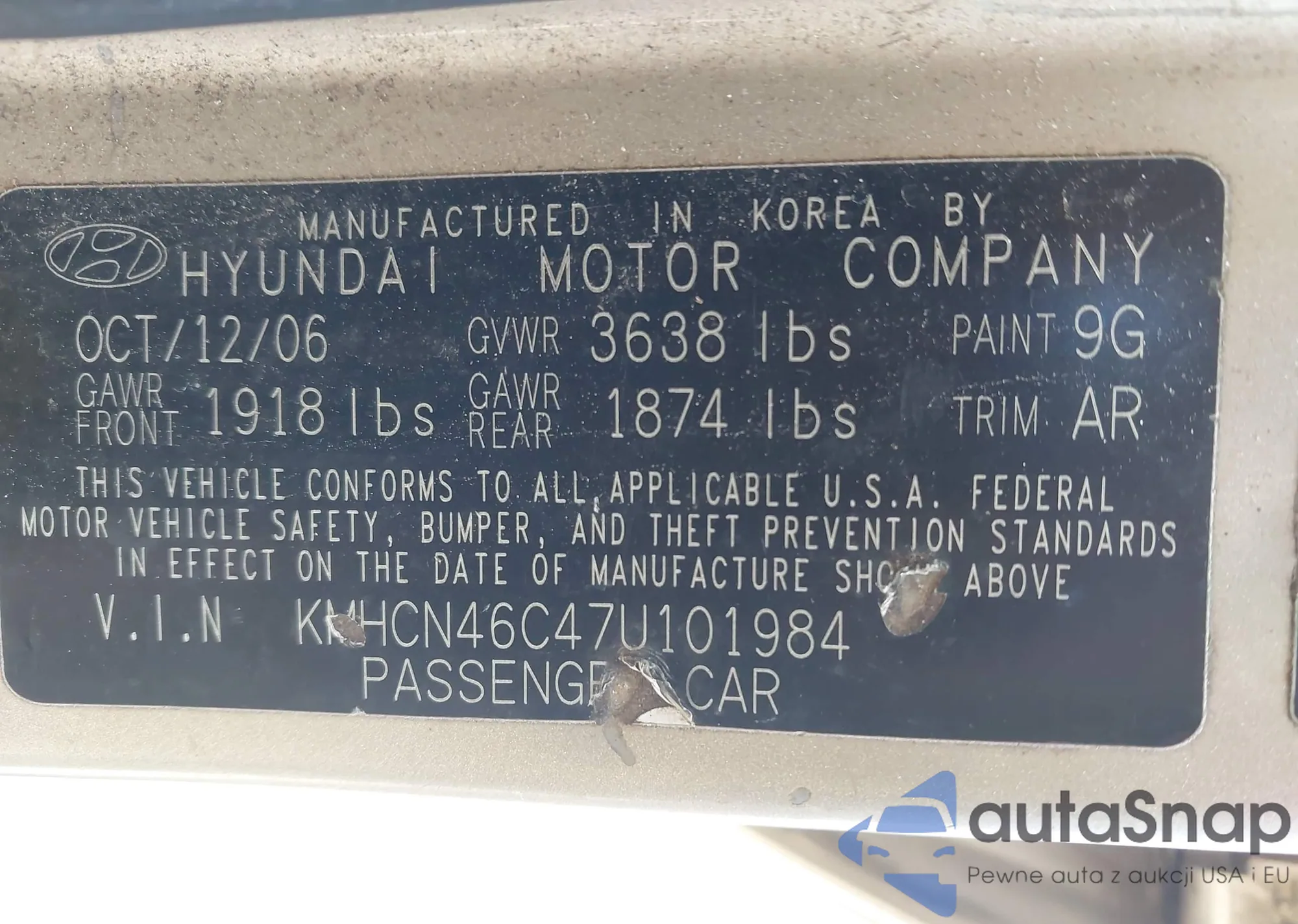 LOT: 42234484 VIN: KMHCN46C47U101984