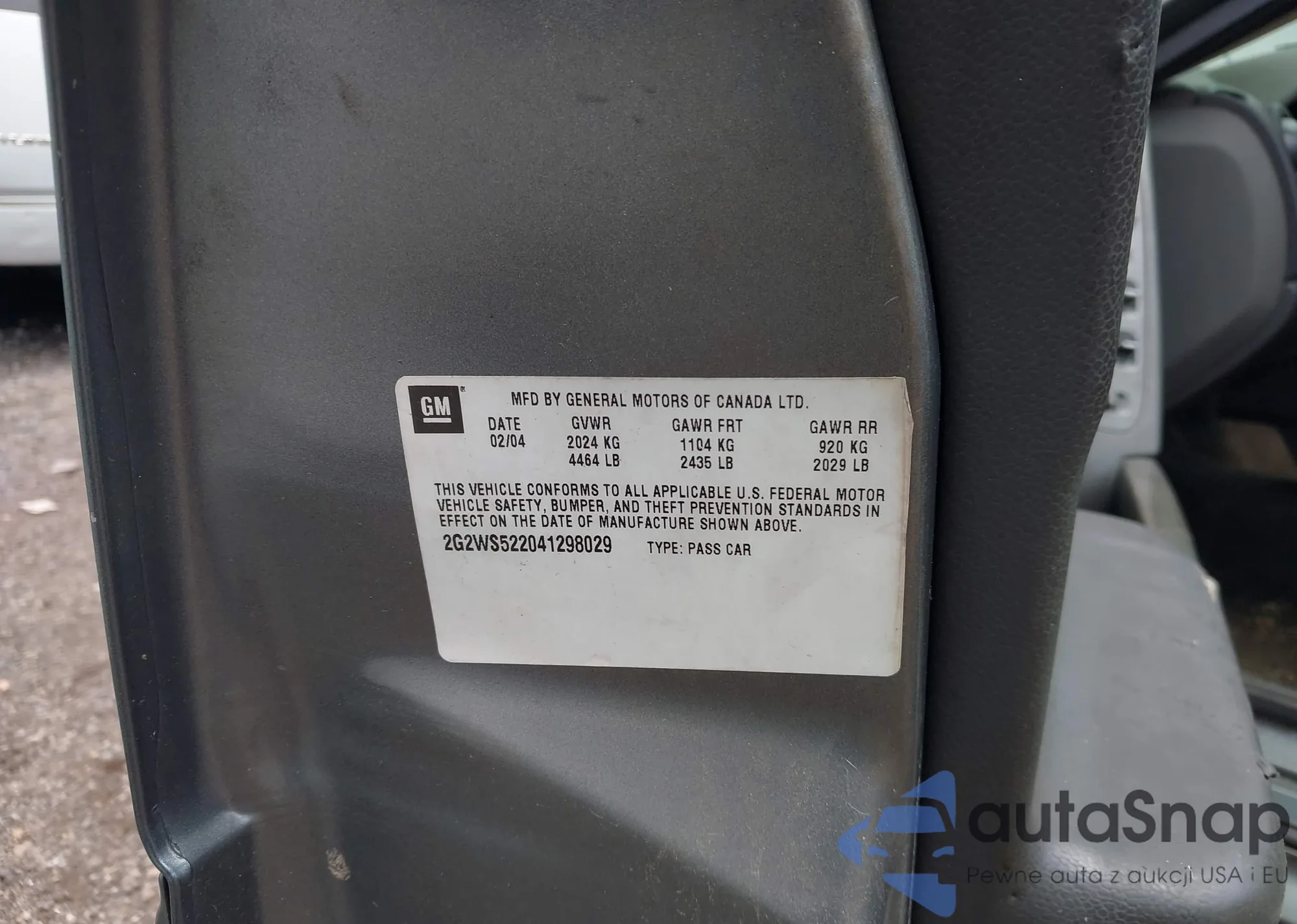 • VIN 2G2WS522041298029
