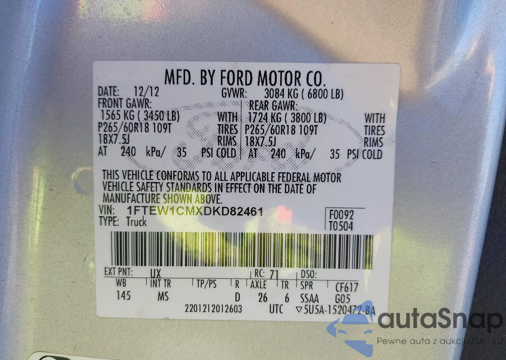 LOT: 42282659 VIN: 1FM5K7B83EGB83903