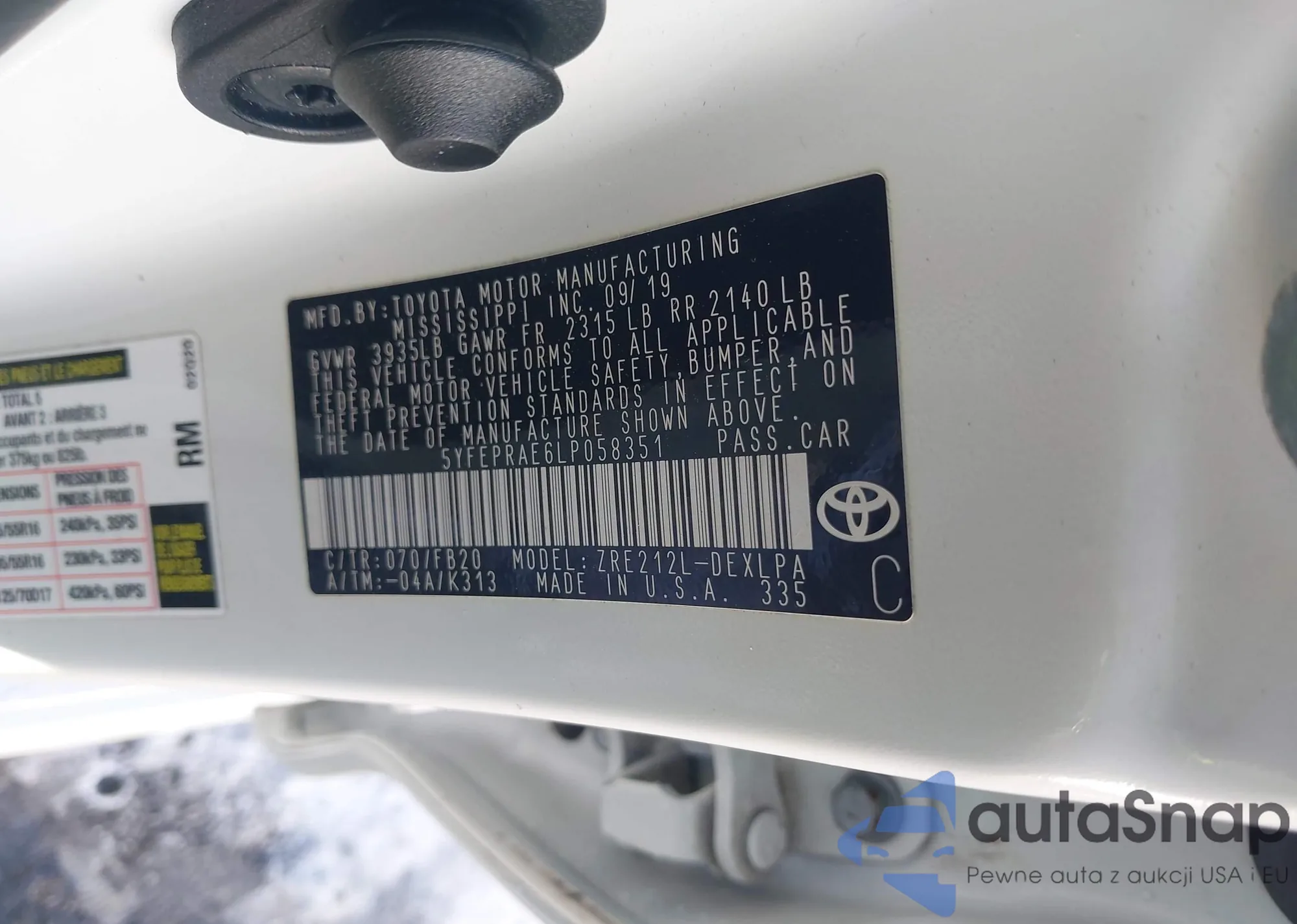 LOT: 41390547 VIN: 5YFEPRAE6LP058351
