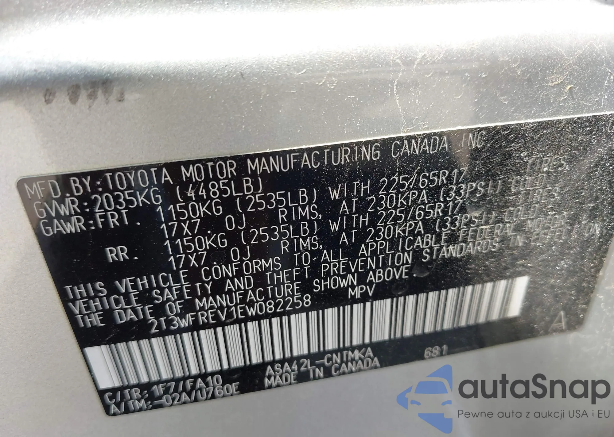 • VIN 2T3WFREV1EW082258