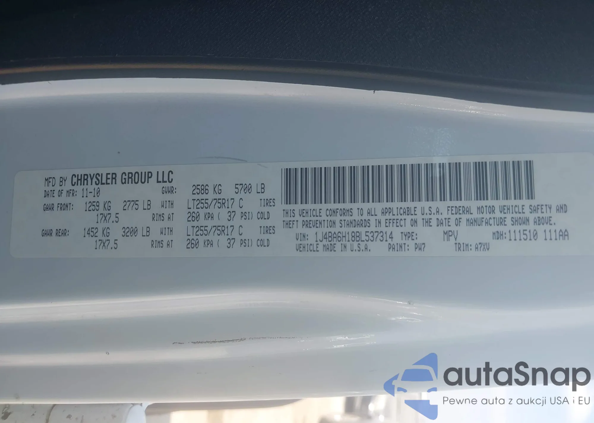• VIN 1J4BA6H18BL537314