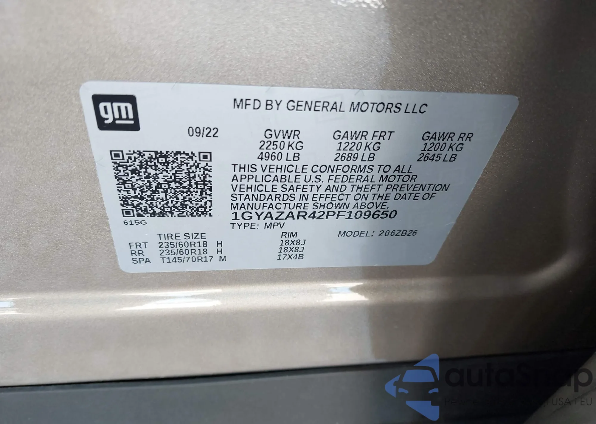 LOT: 41921489 VIN: 1GYAZAR42PF109650