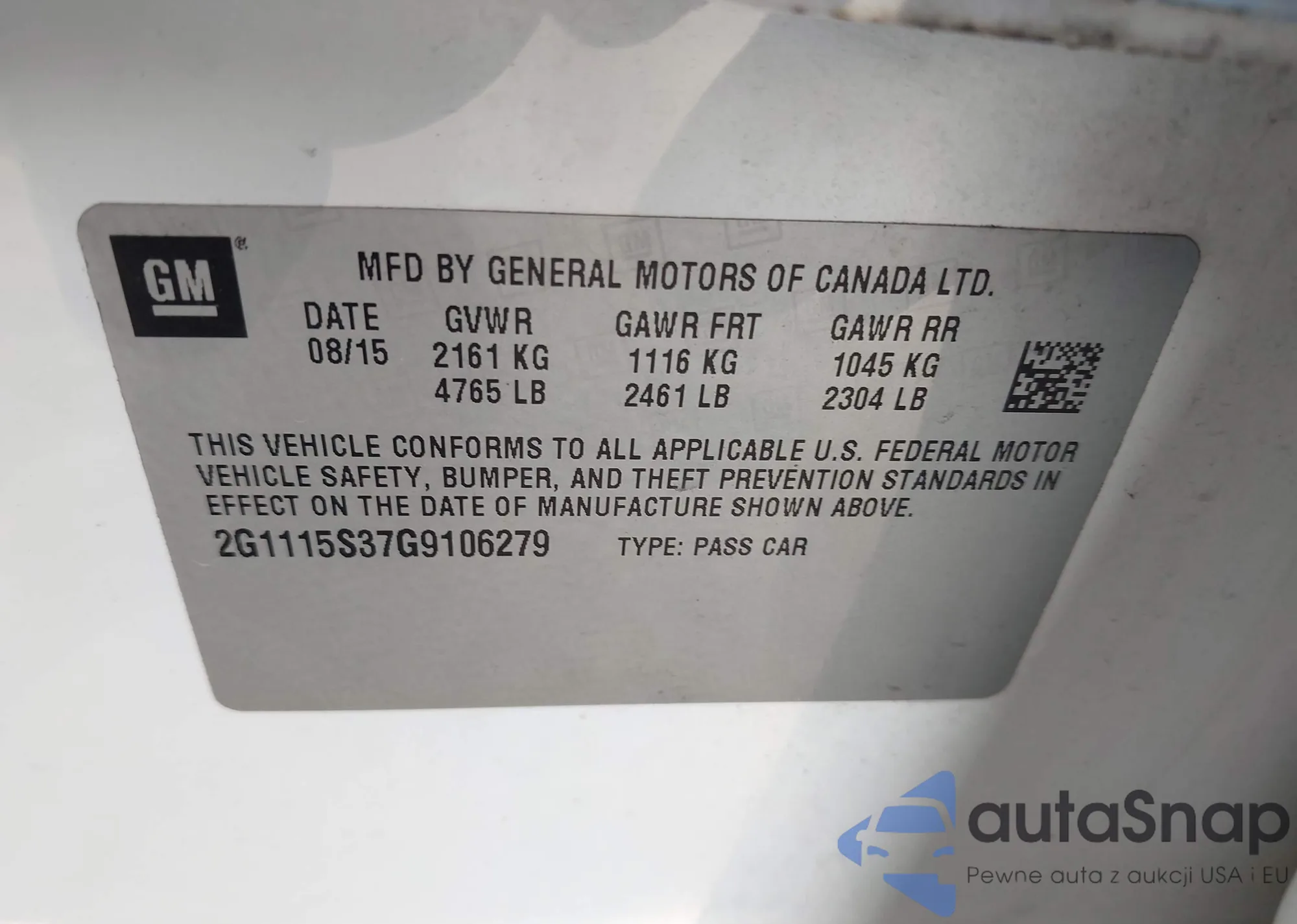 • VIN 2G1115S37G9106279