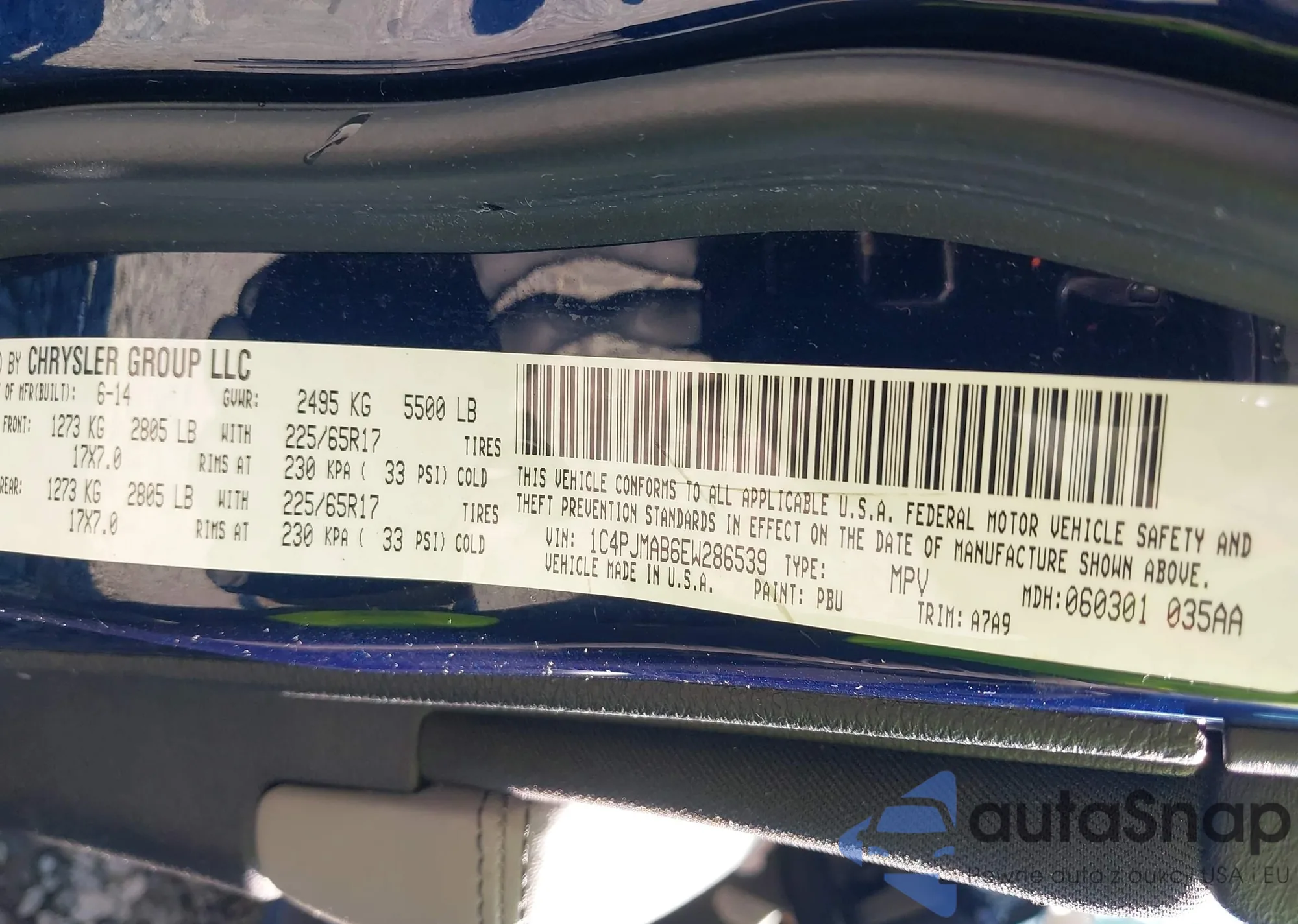LOT: 42034895 VIN: 1C4PJMAB6EW286539