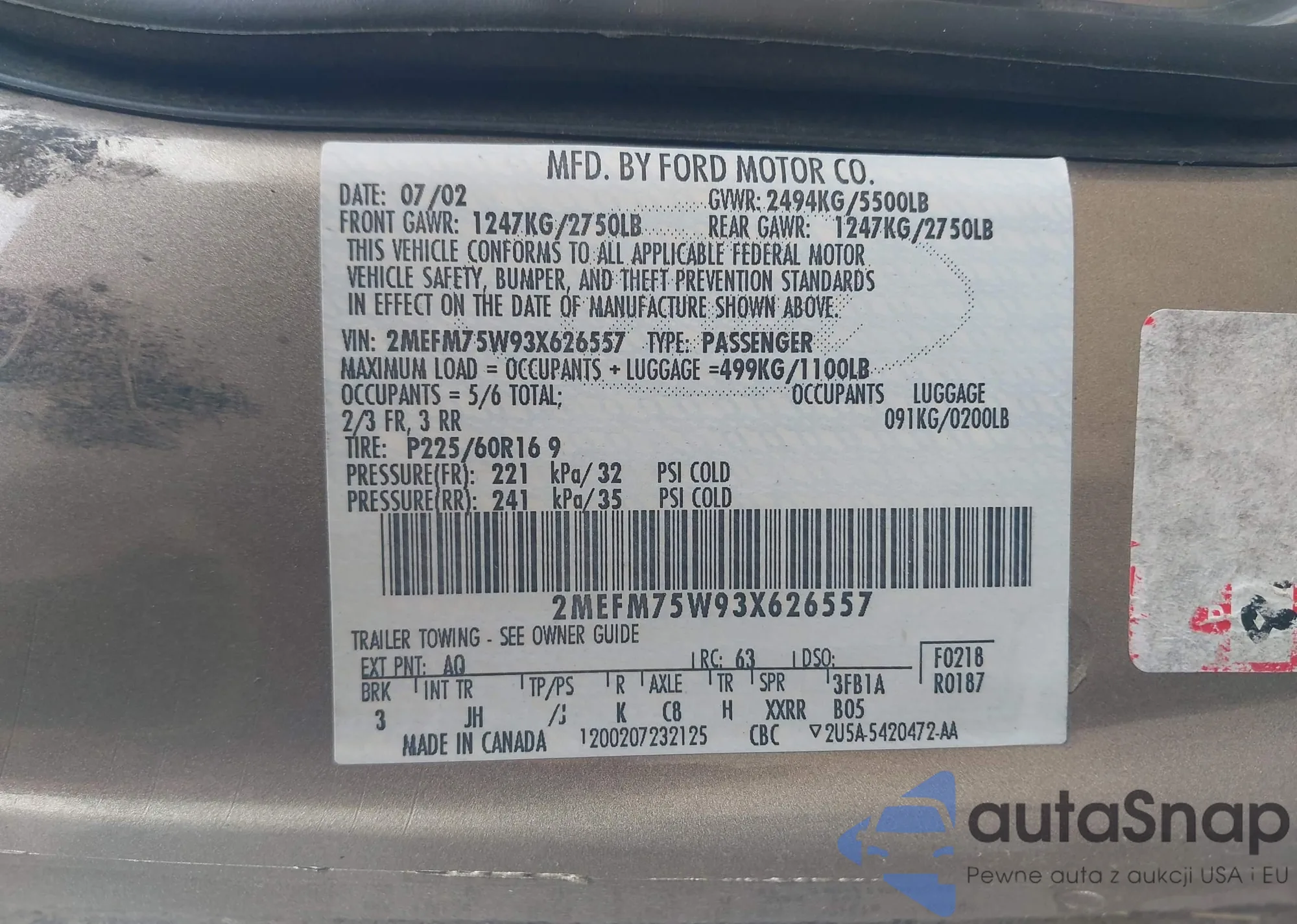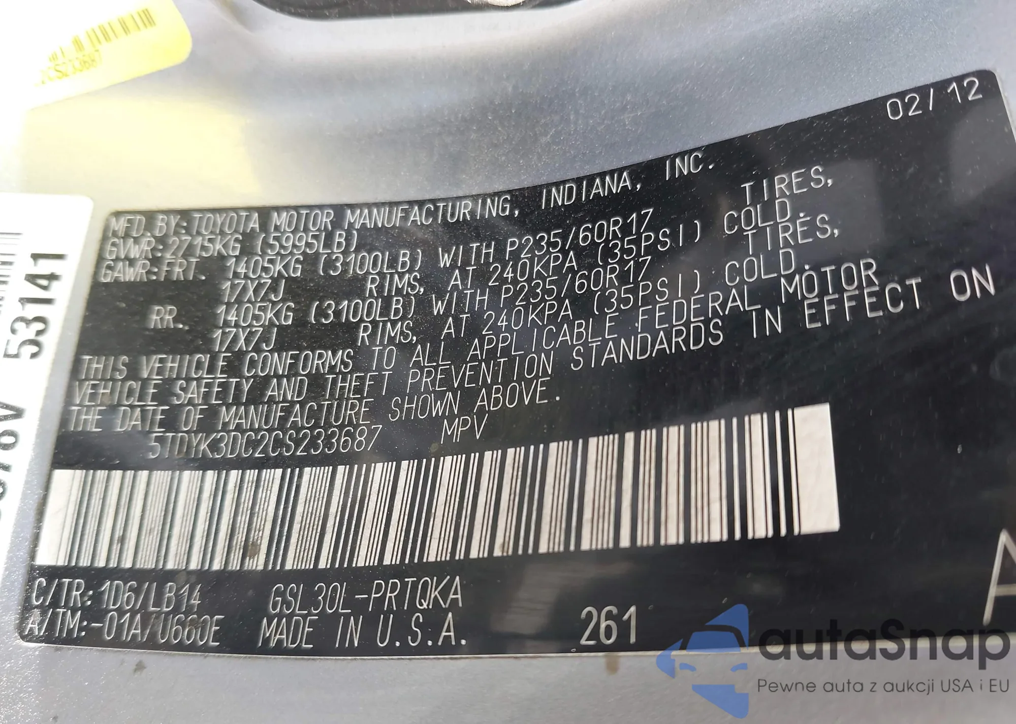 • VIN 4T1BE32K25U534963