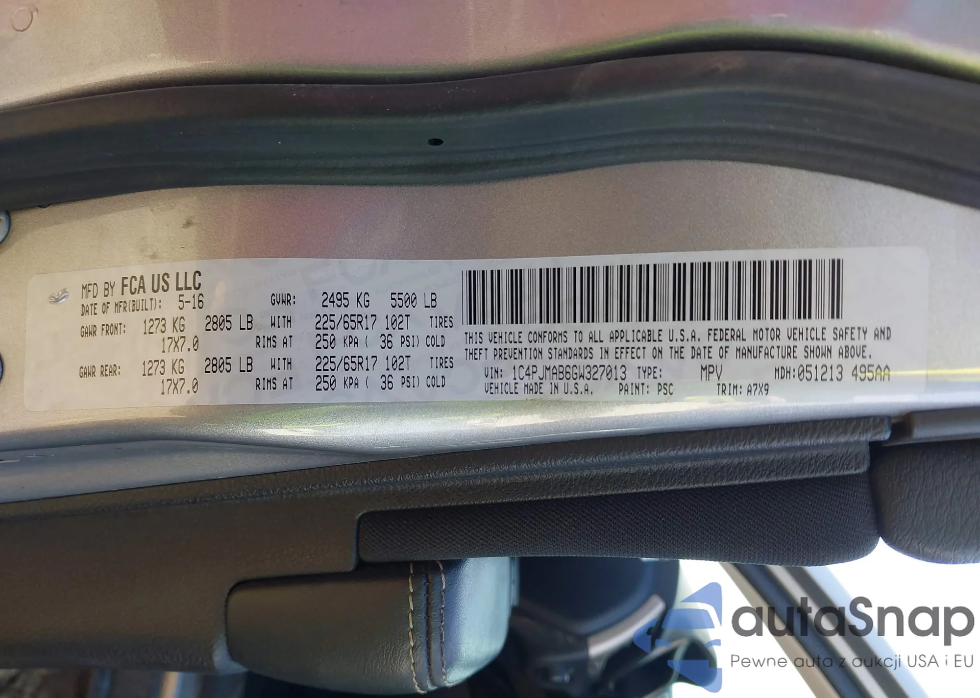 • VIN 1C4PJMAB6GW327013