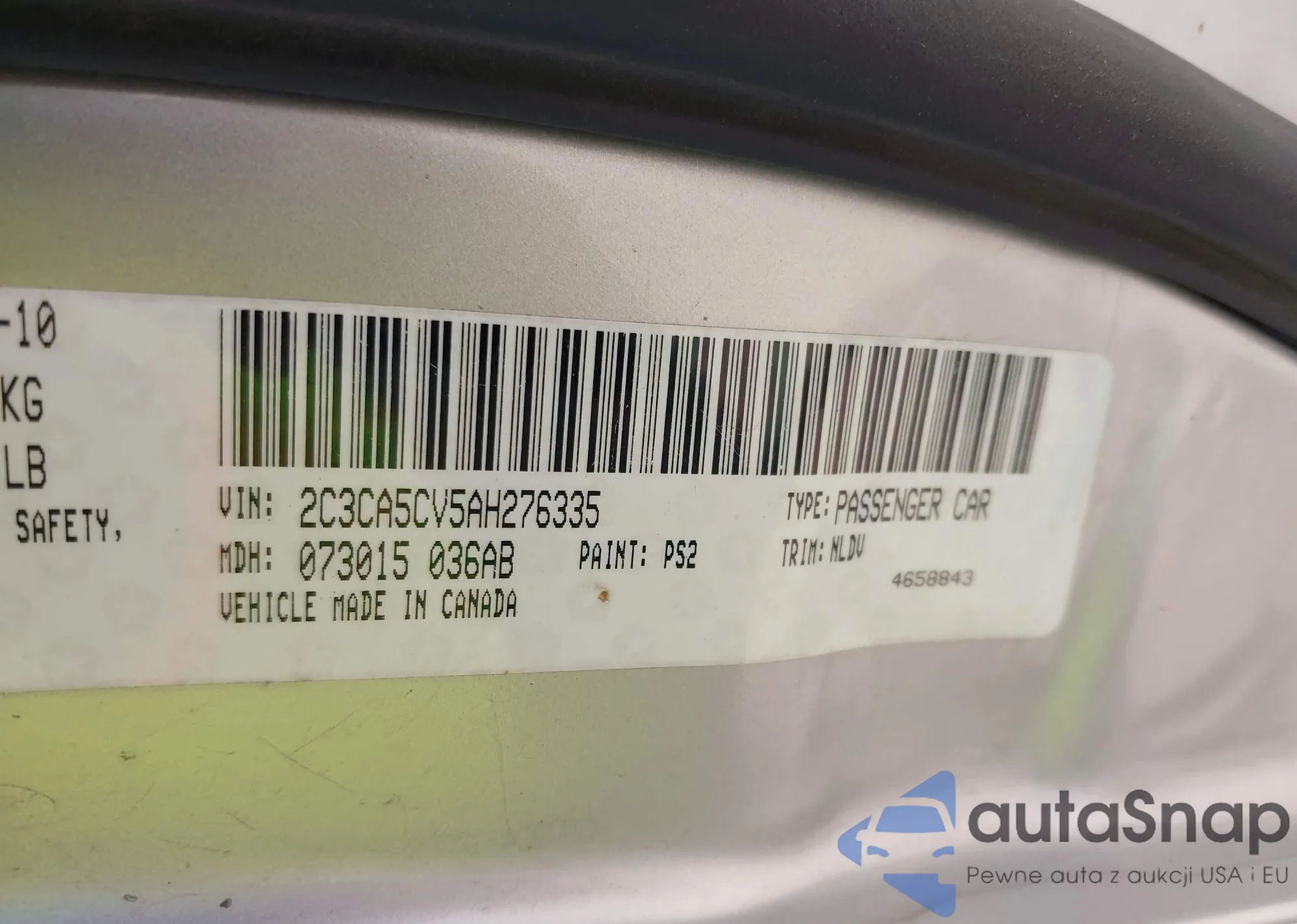 • VIN 2C3CA5CV5AH276335