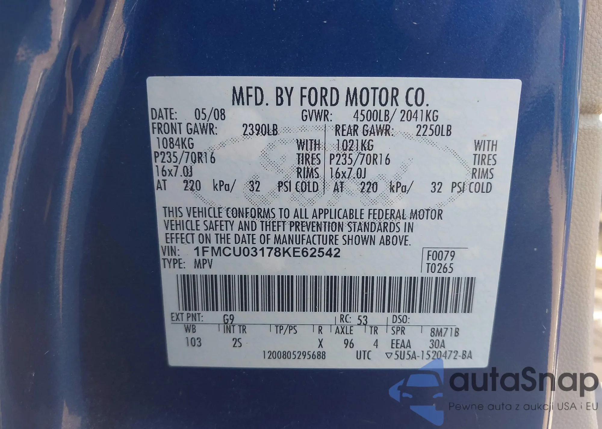 LOT: 42233988 VIN: 1FMCU03178KE62542