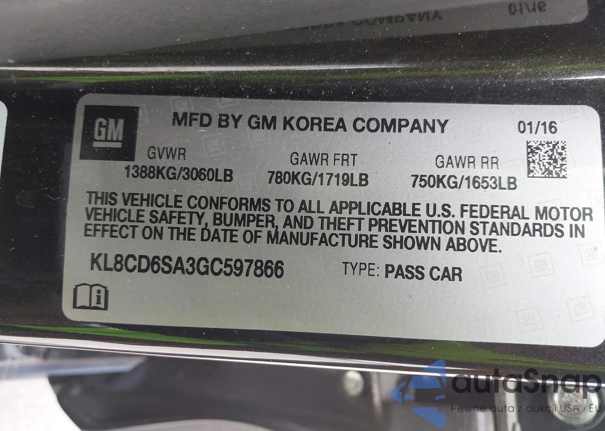 • VIN KL8CD6SA3GC597866