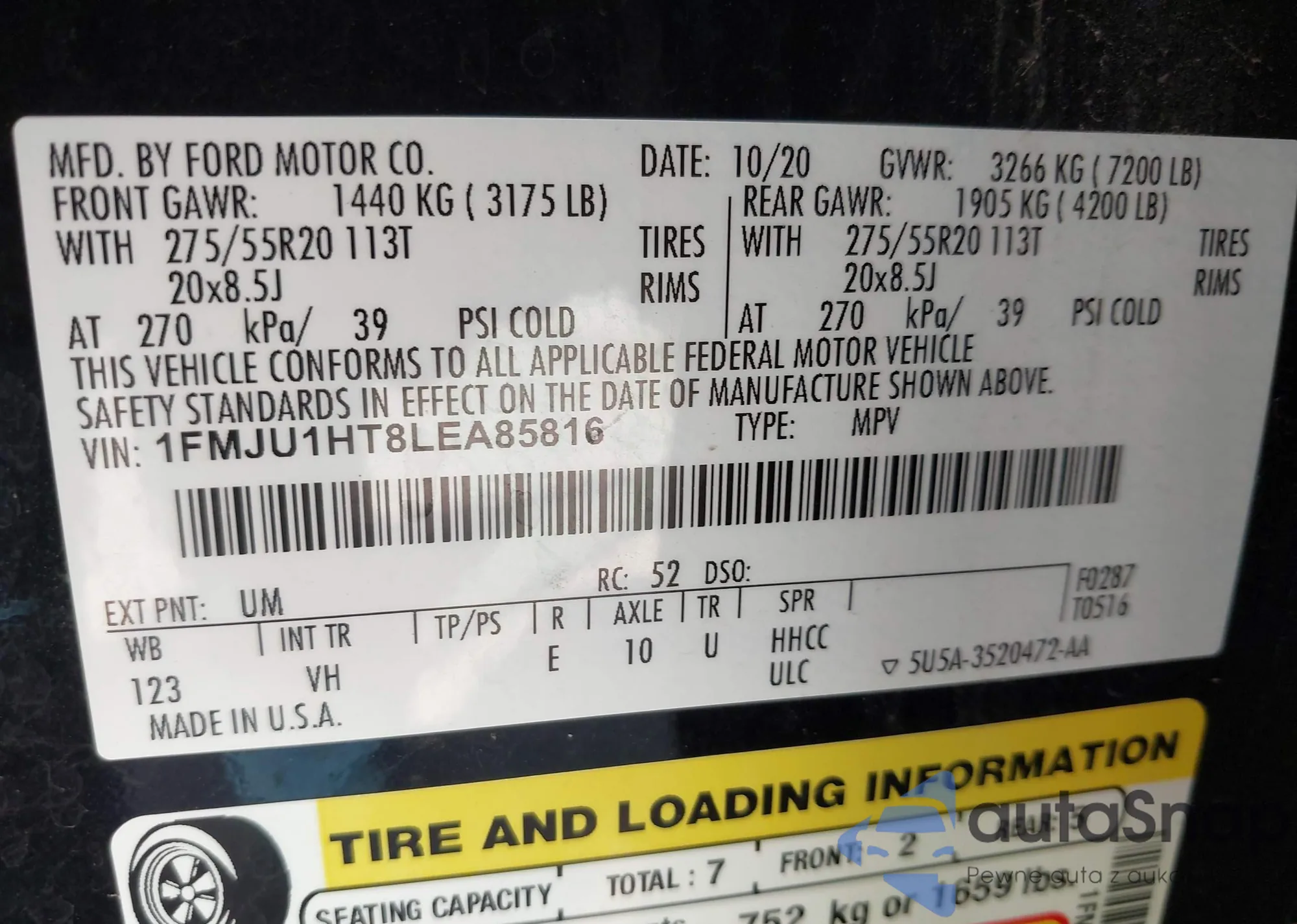 LOT: 41891667 VIN: 1FMJU1HT8LEA85816