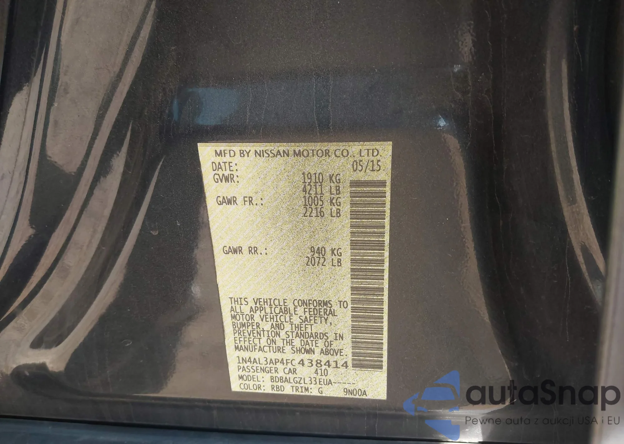 LOT: 42432577 VIN: 1N4AL3AP4FC438414