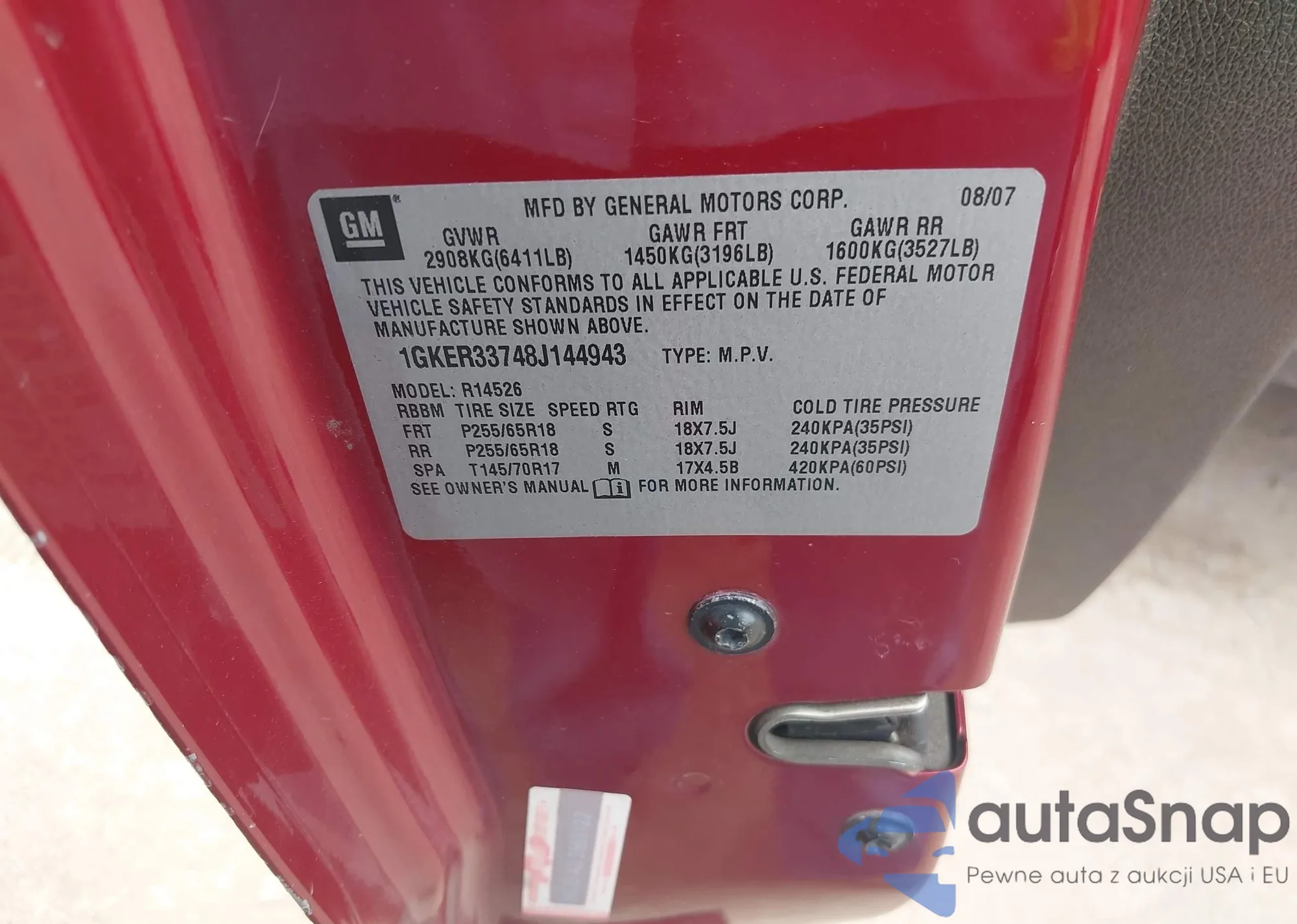 LOT: 42433837 VIN: 1GKER33748J144943