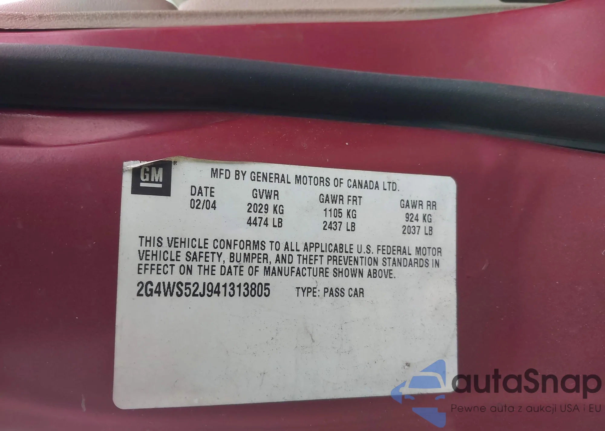 • VIN 2G4WS52J941313805