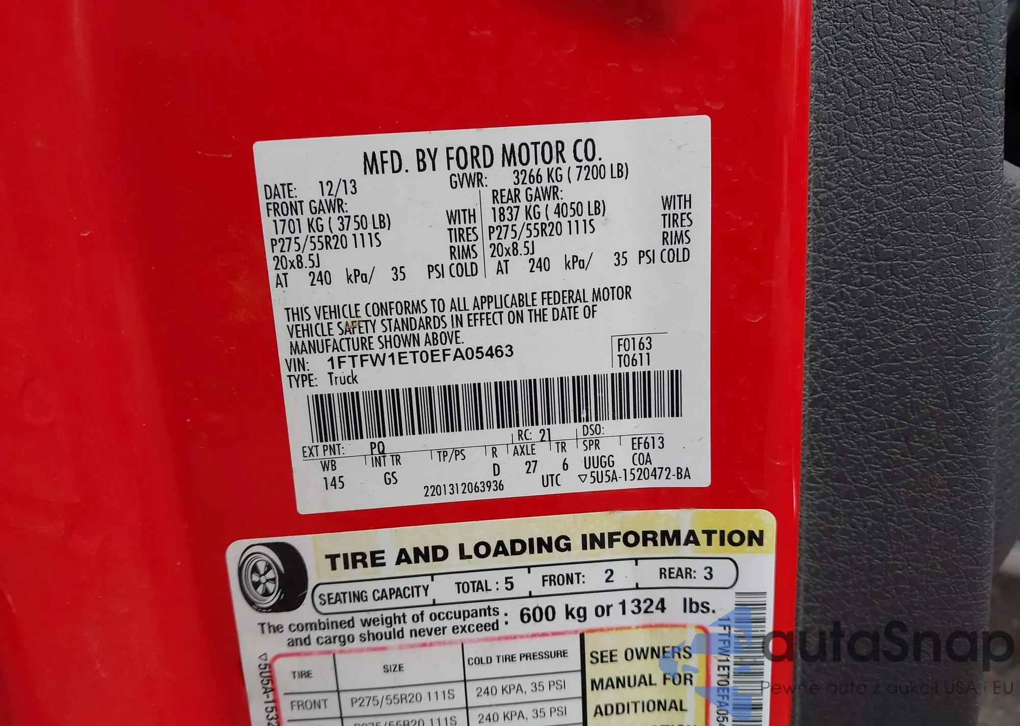 • VIN 1FTFW1ET0EFA05463