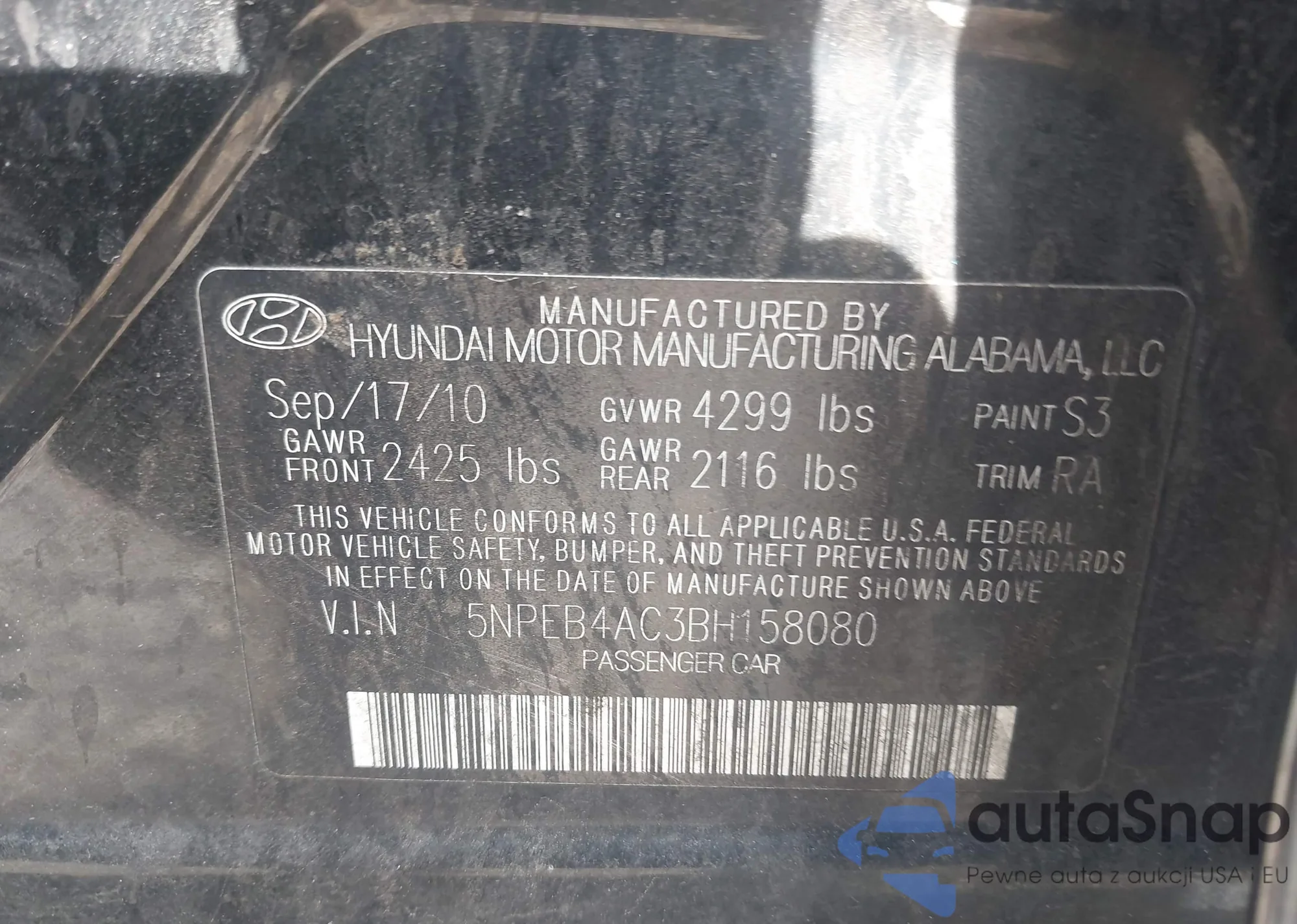 • VIN 5NPEL4JA6MH124195