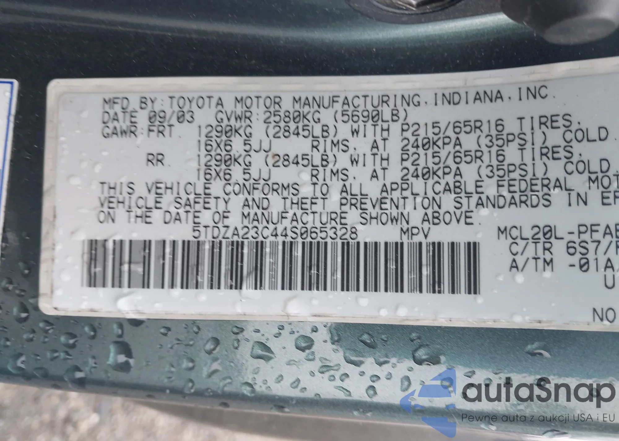 • VIN 5TDZA23C44S065328