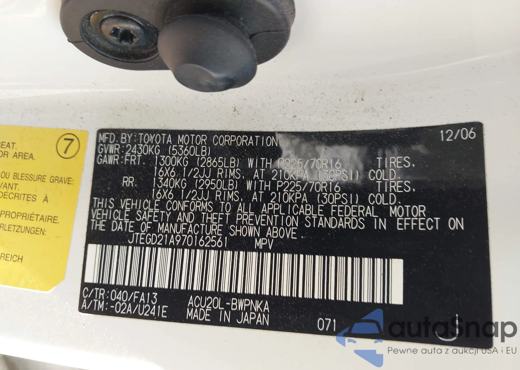 LOT: 42005898 VIN: JT8BF22G0V5013000