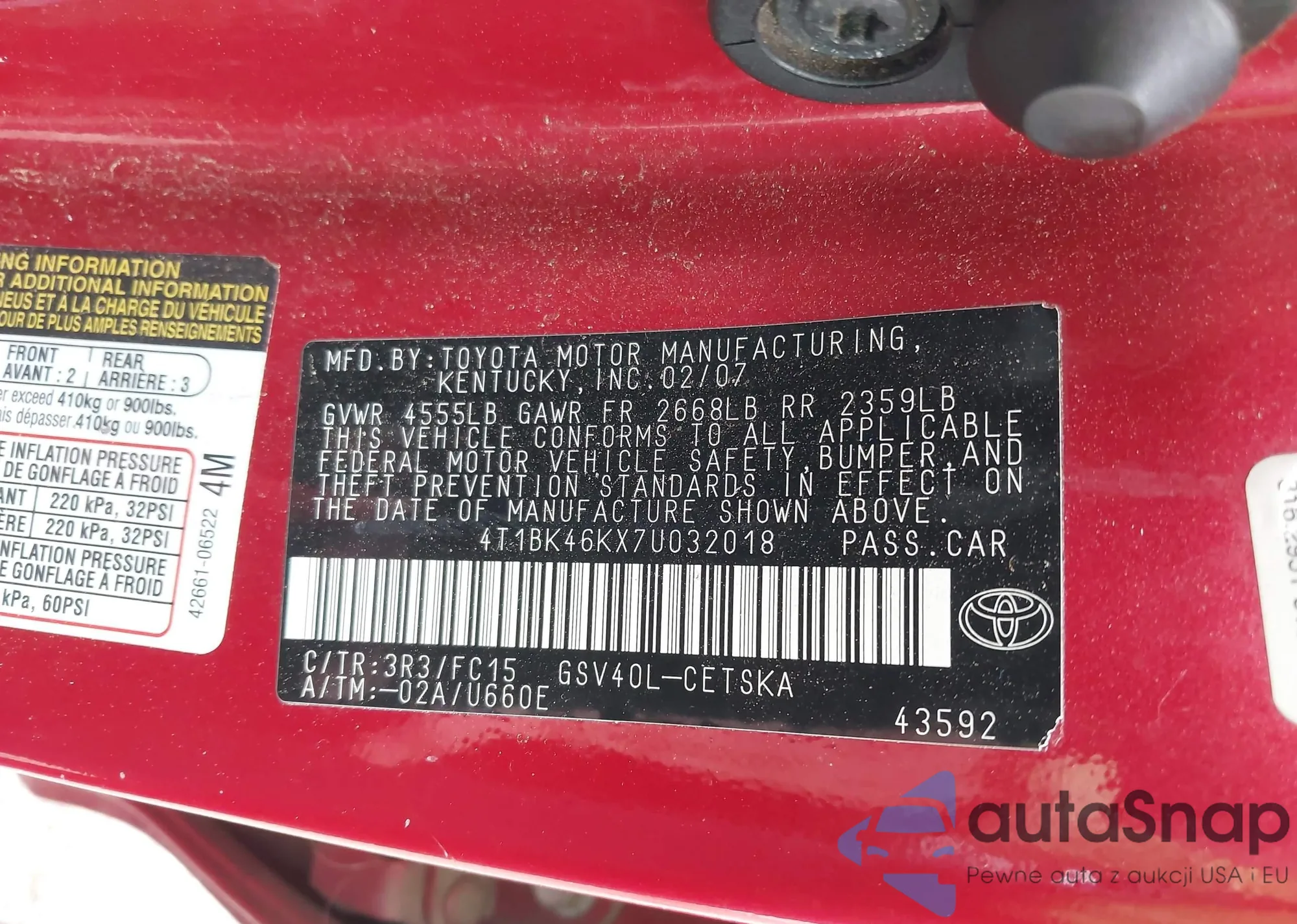 • VIN 4T1BK46KX7U032018