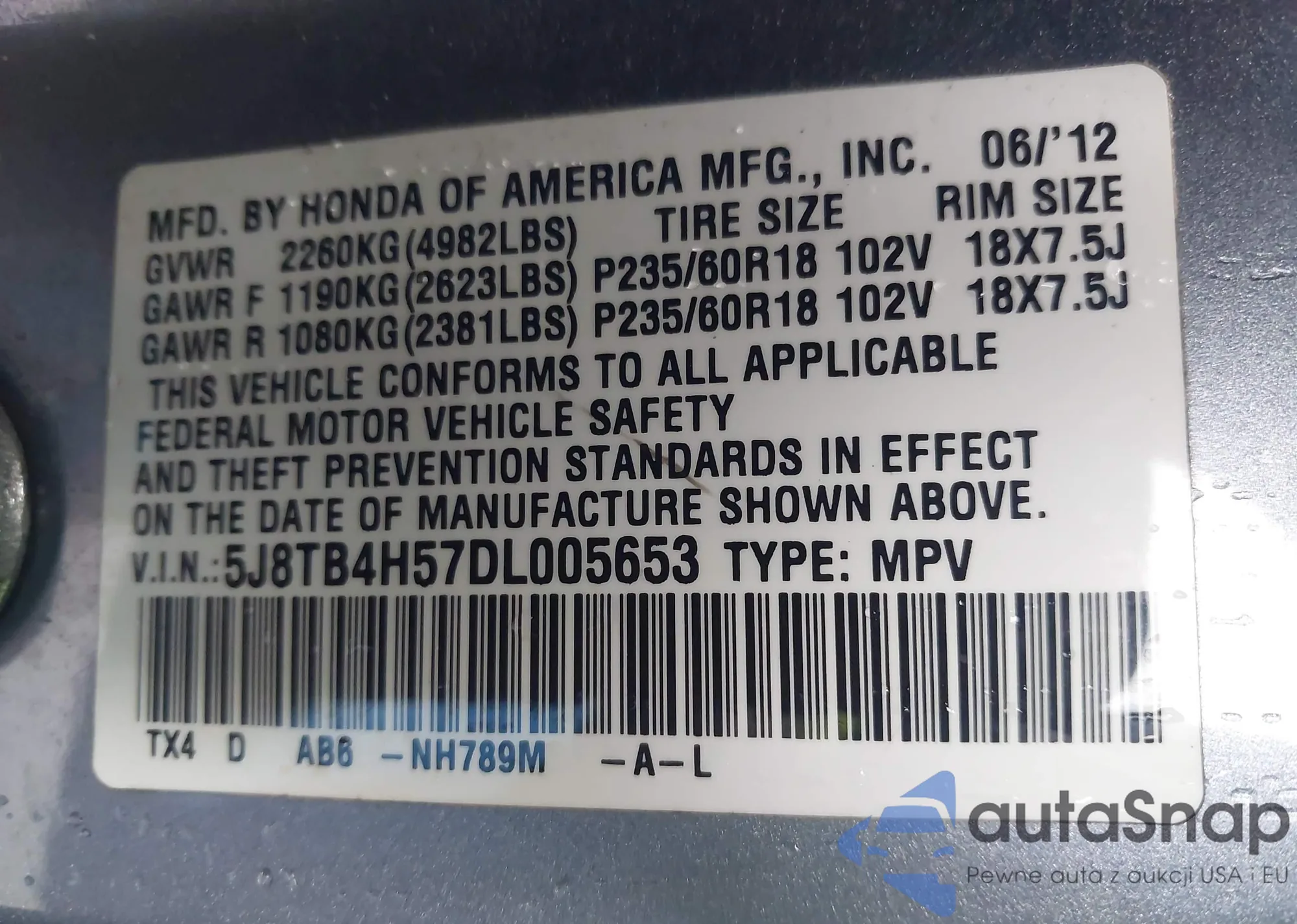 • VIN 5J8TB4H57DL005653