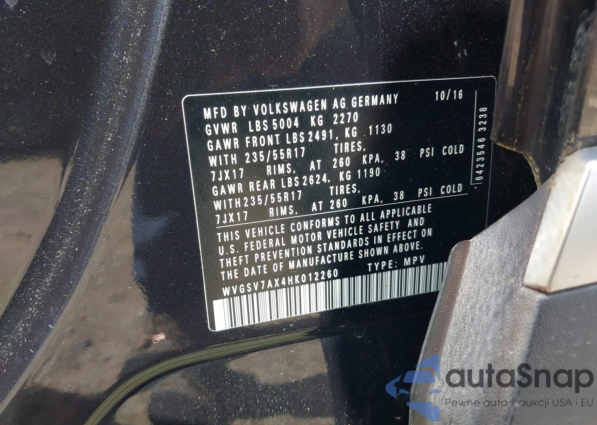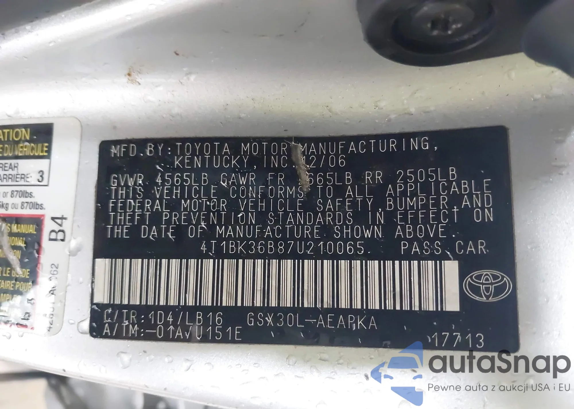LOT: 42191406 VIN: 4T1BK46KX7U032018