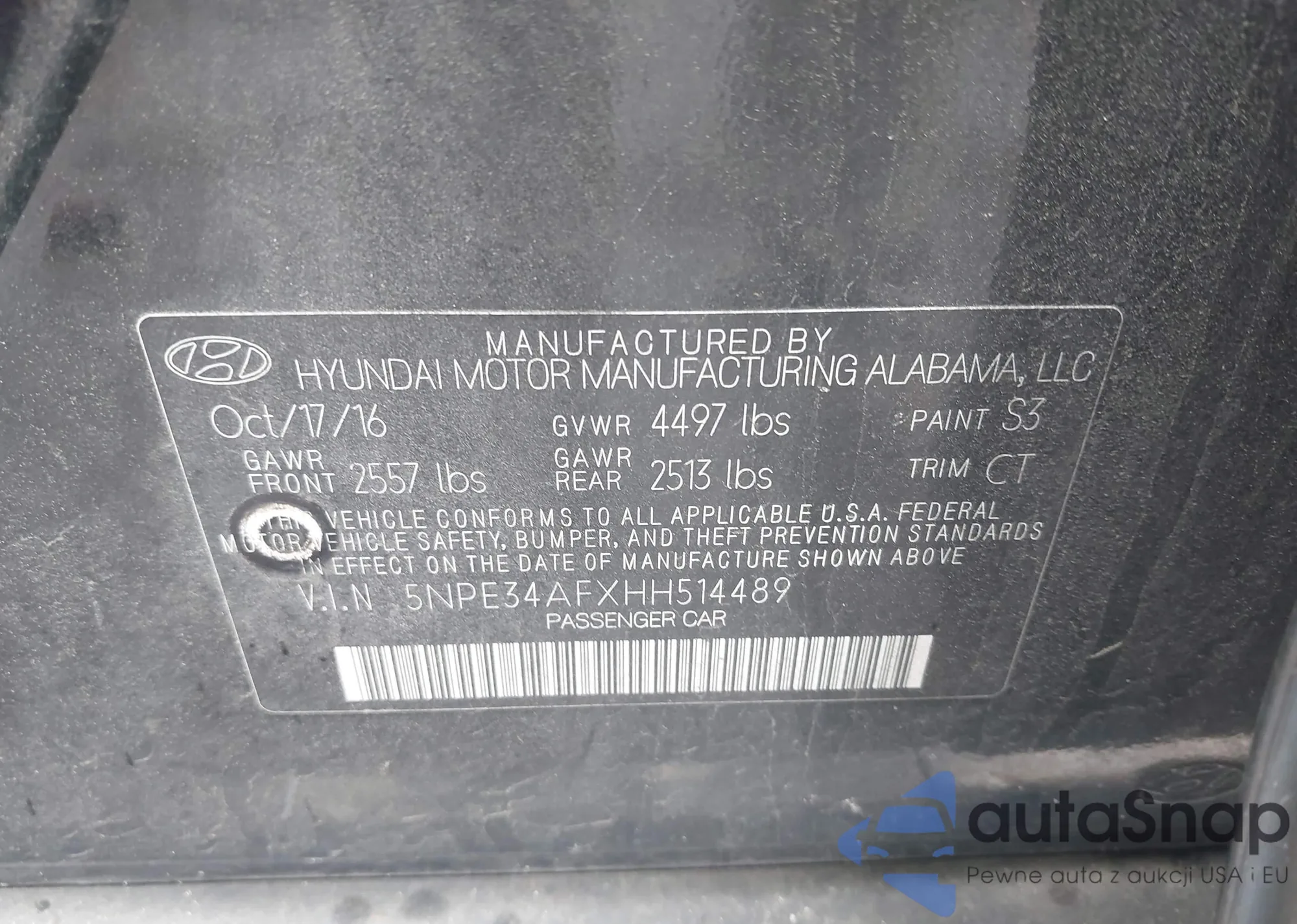 • VIN 5NPE34AFXHH514489