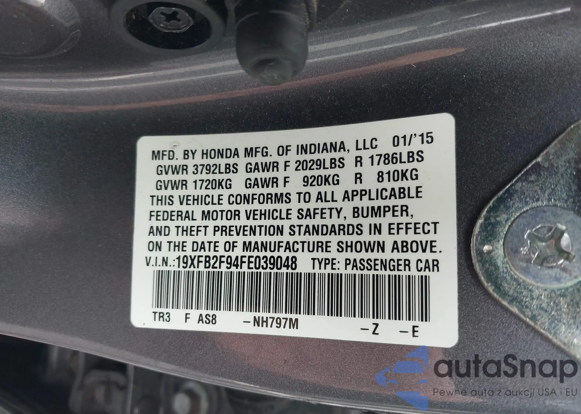 LOT: 42213310 VIN: 1HGCR2F79HA229805