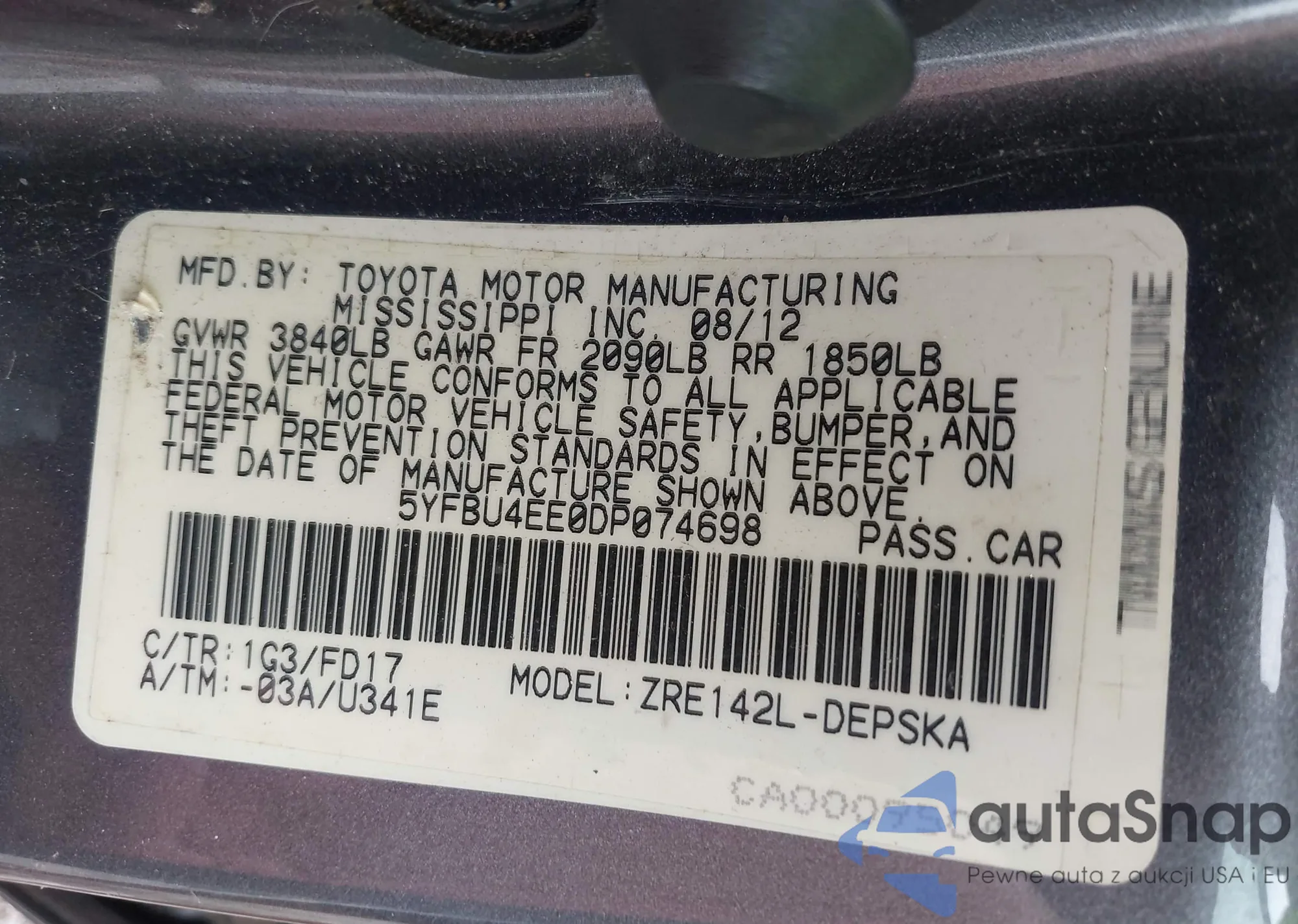 • VIN 5YFBU4EE0DP074698