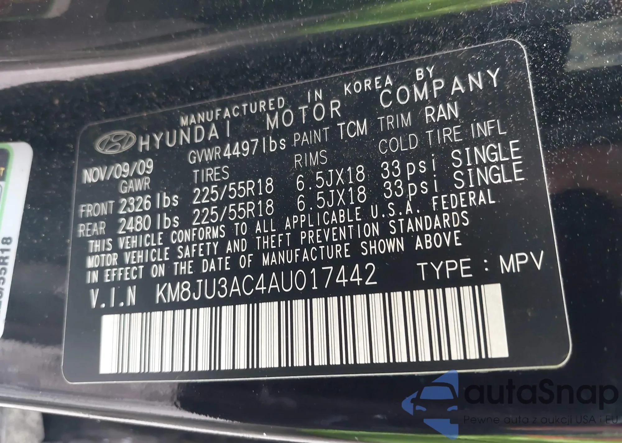 • VIN KM8JU3AC4AU017442