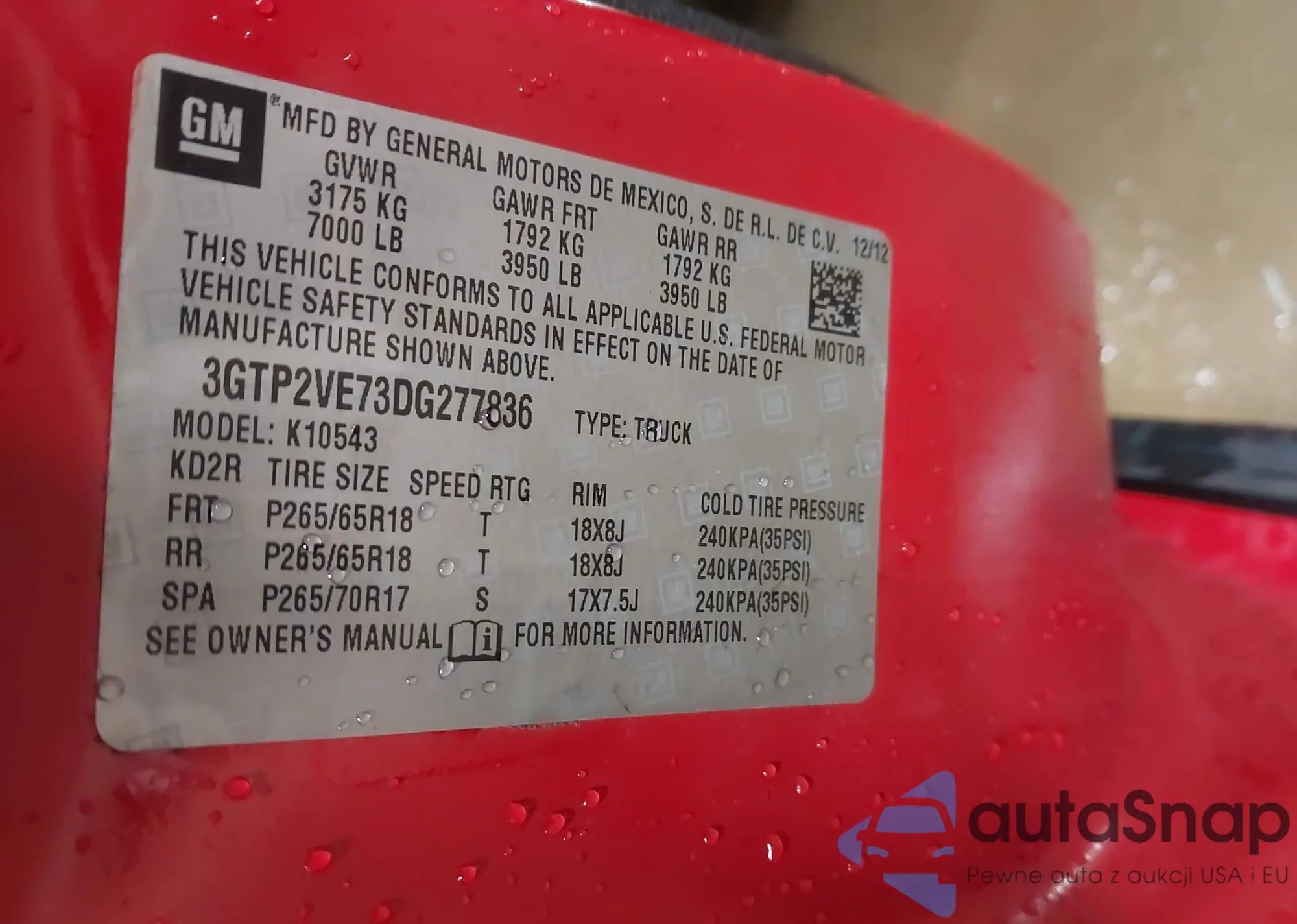 LOT: 41961773 VIN: 3GTP2VE73DG277836