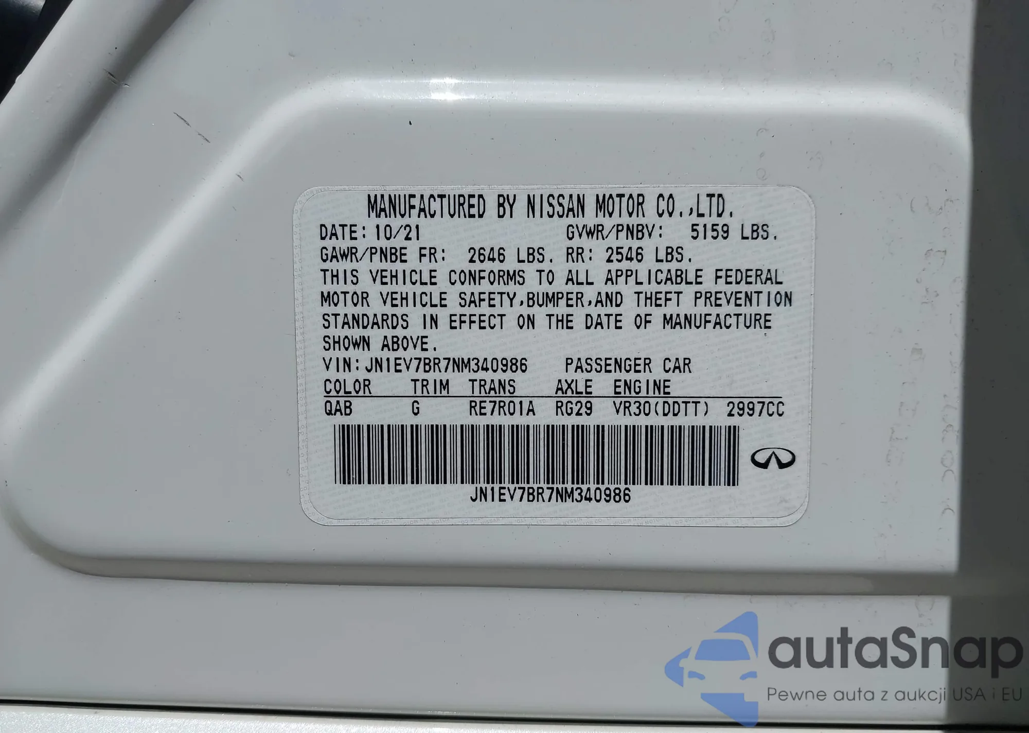 LOT: 42314800 VIN: JN1EV7BR7NM340986