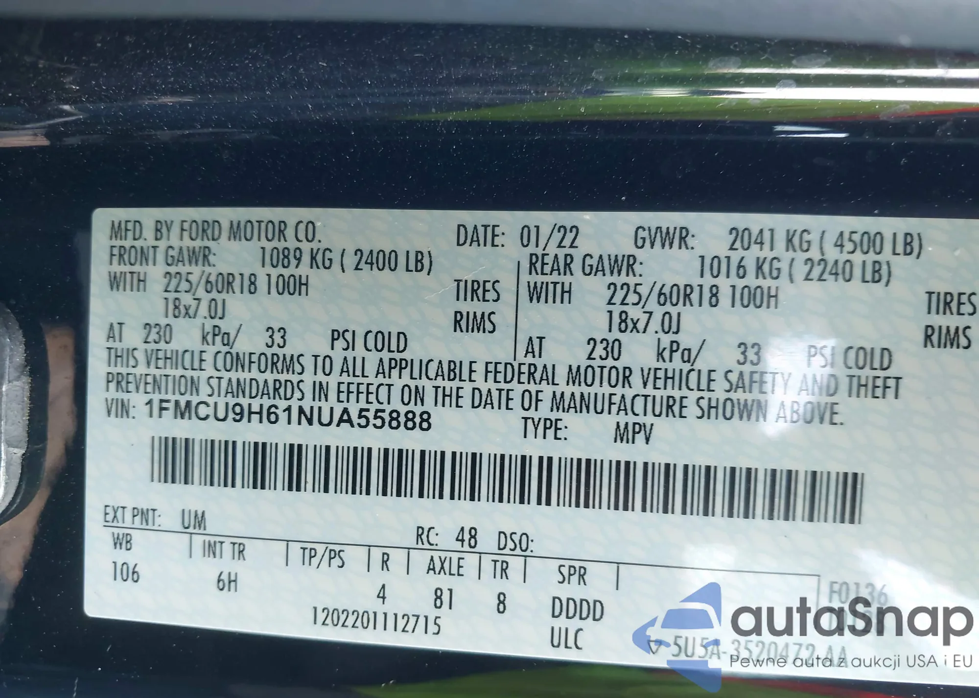 • VIN 1FMCU9H61NUA55888