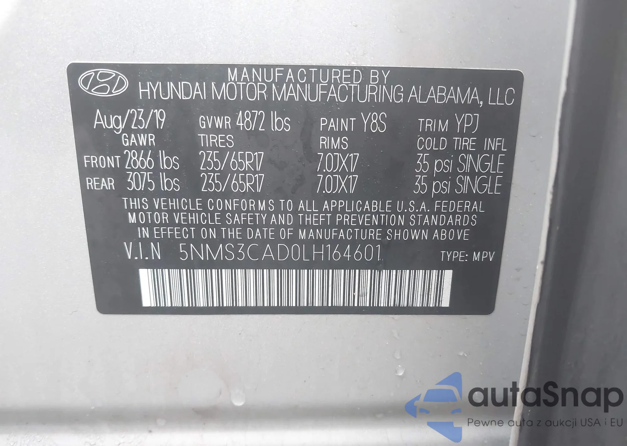 • VIN 5NMS3CADOLH164601