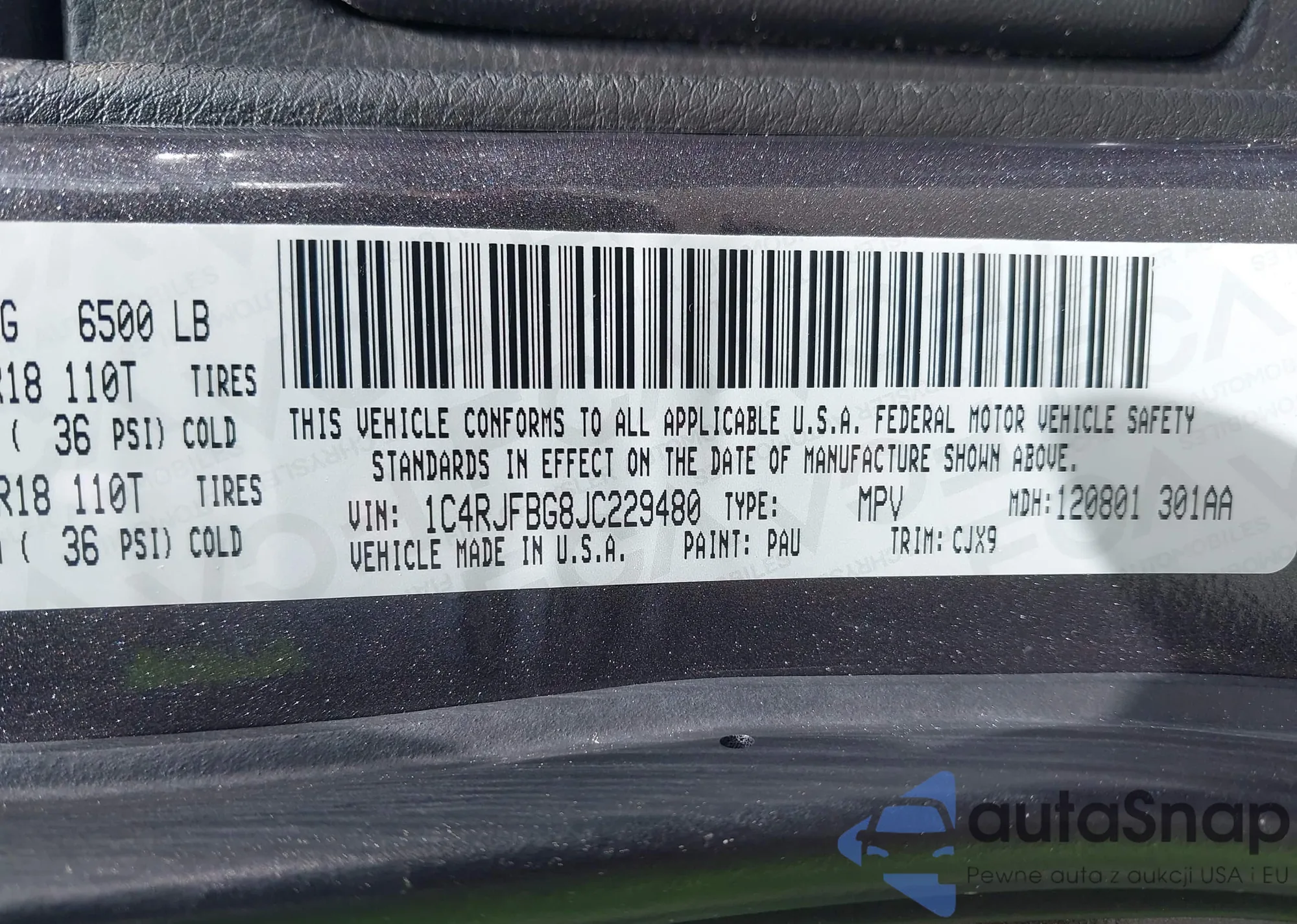 • VIN 1C4RJFBG8JC229480