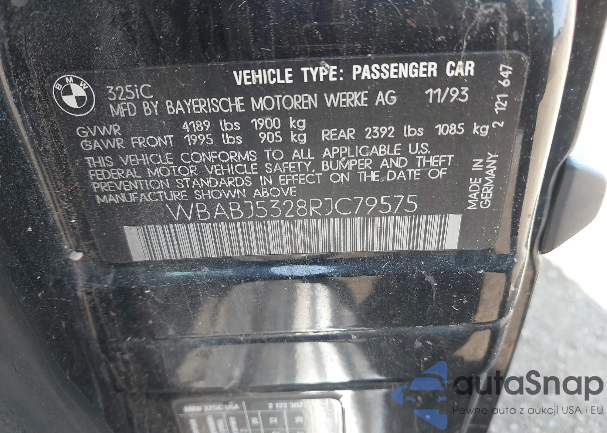 1994 BMW 325 Ic from USA, damaged, VIN WBABJ5328RJC79575