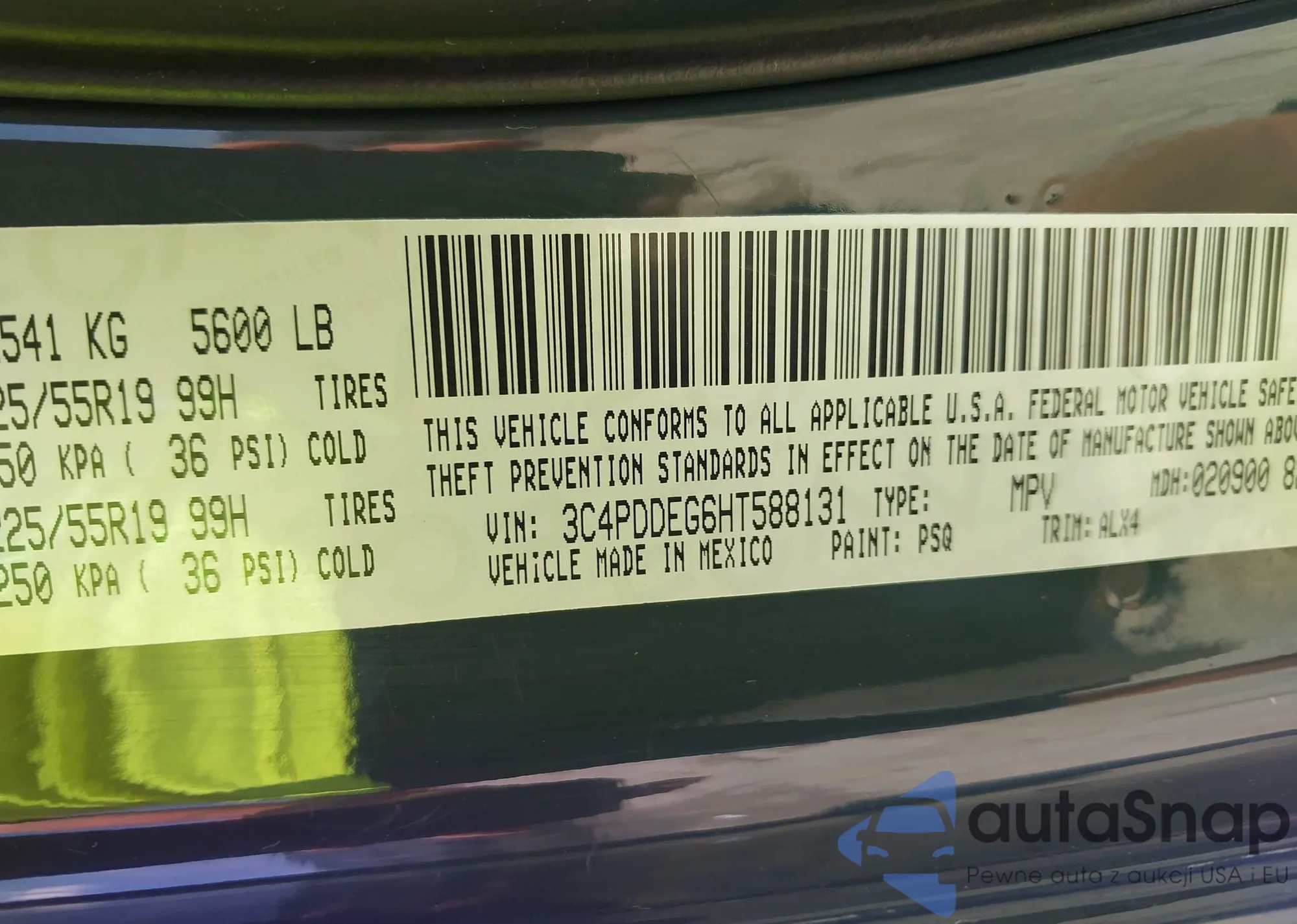• VIN 3C4PDDEG6HT588131