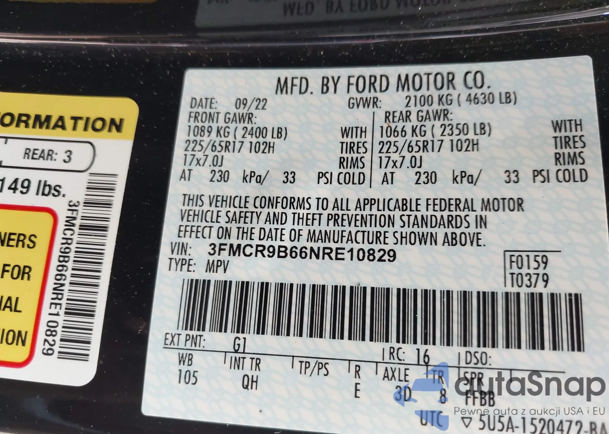 • VIN 3FMCR9B66NRE10829