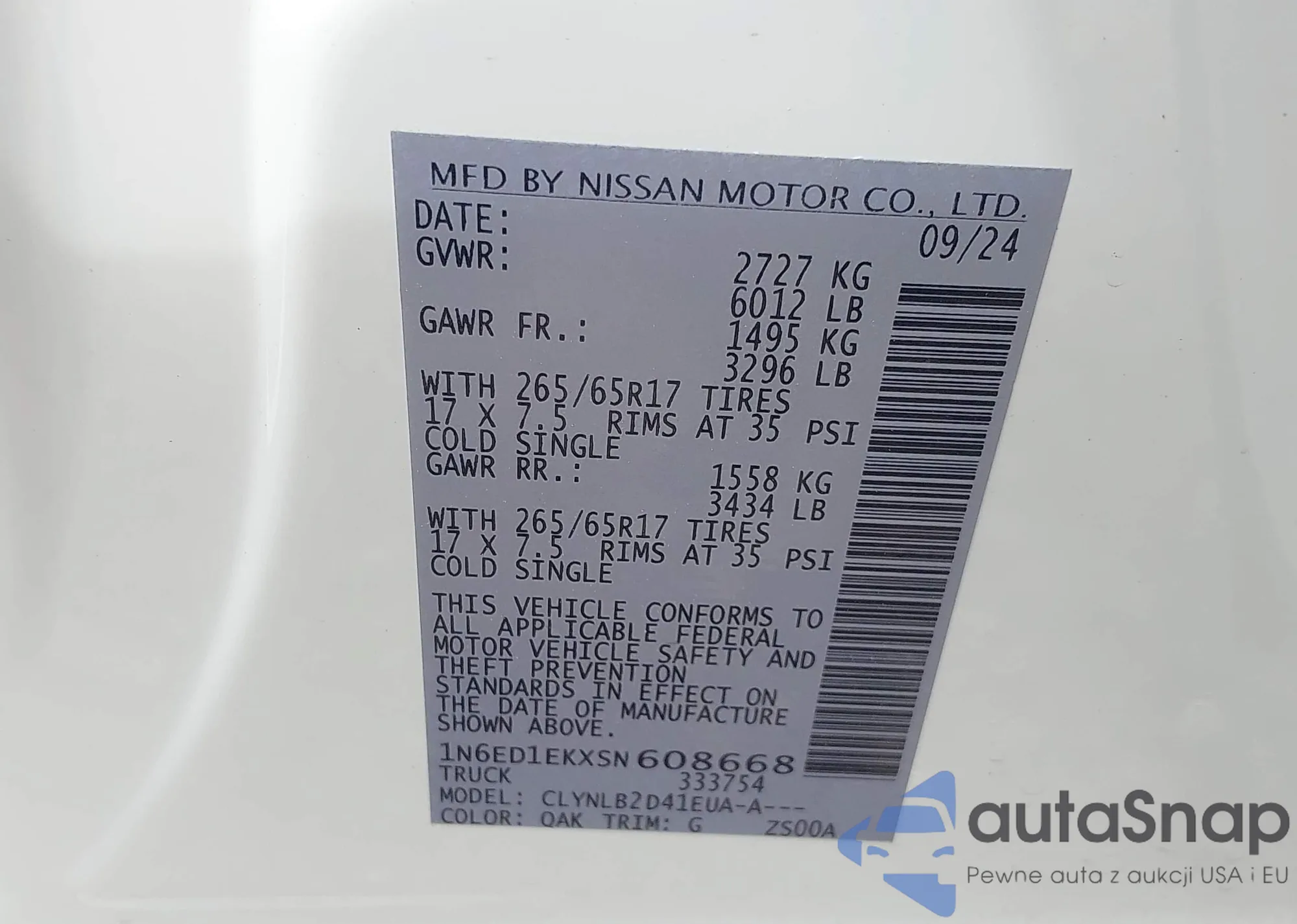 • VIN 1N6ED1EKXSN608668