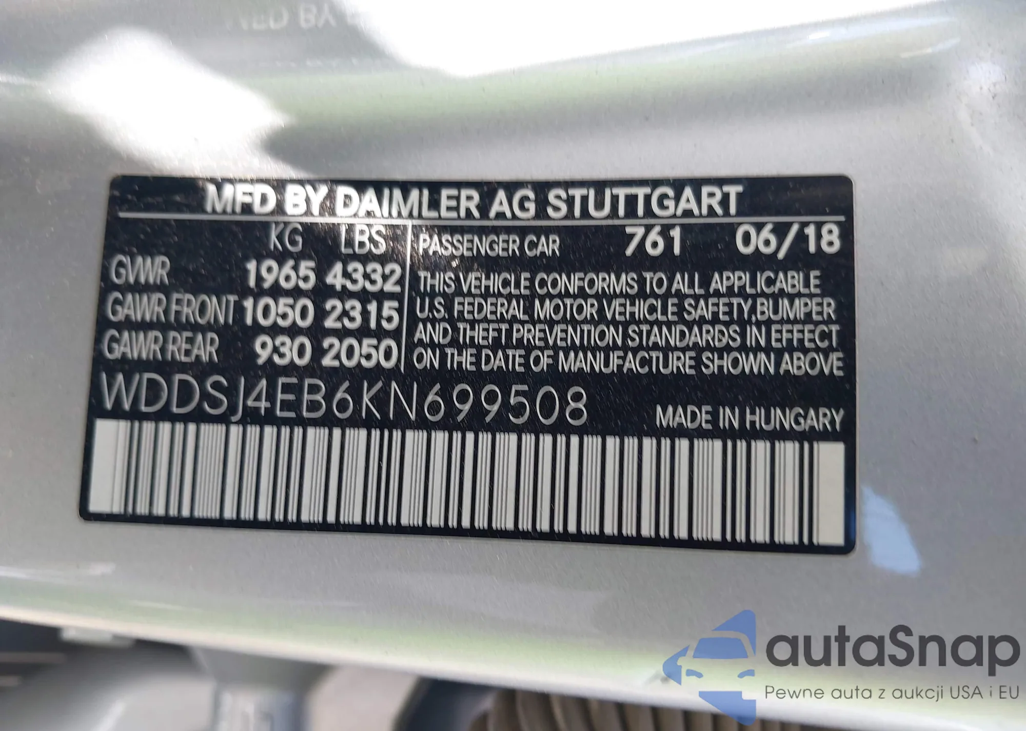 • VIN WDDSJ4EB6KN699508