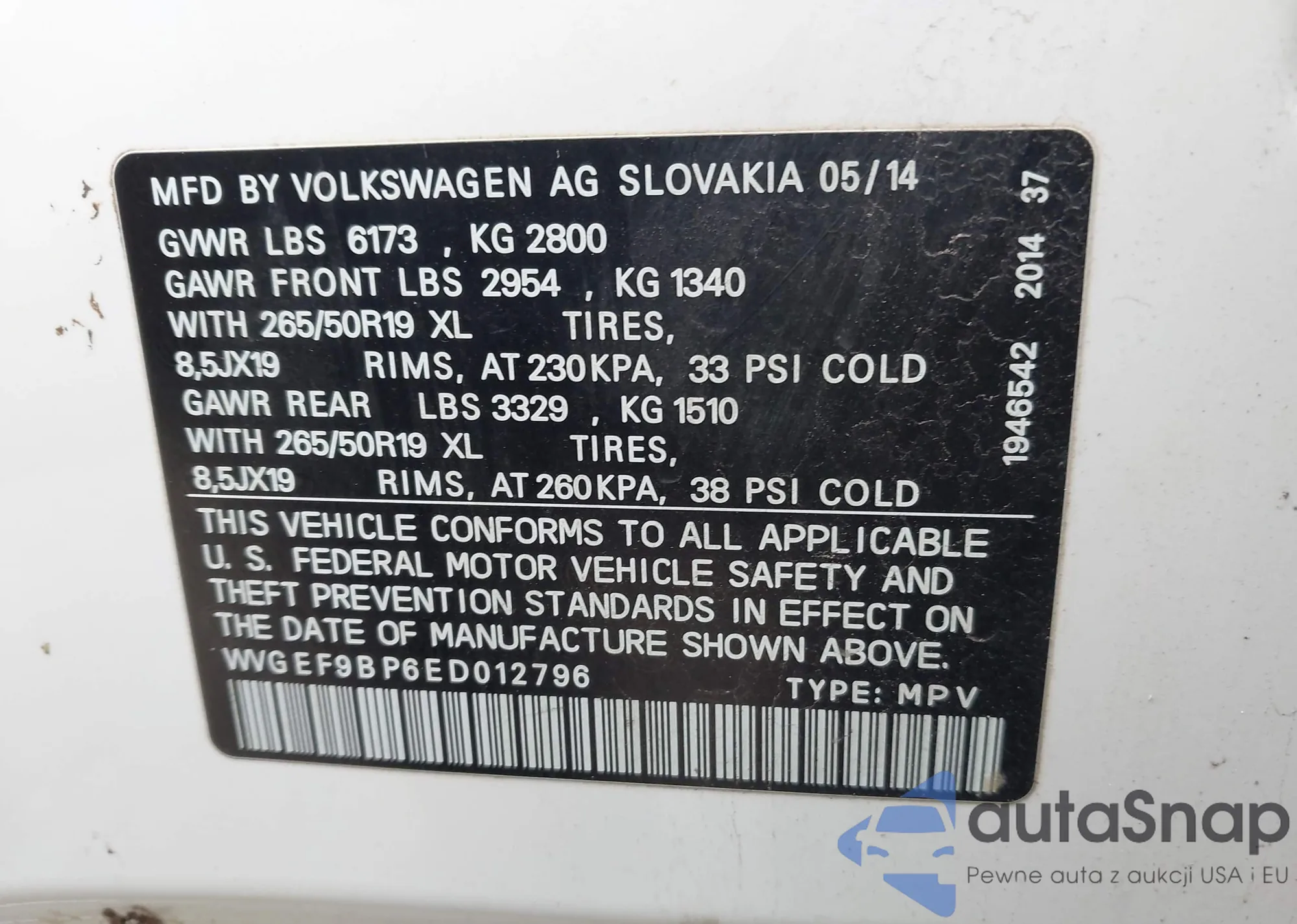 • VIN WVGEF9BP6ED012796