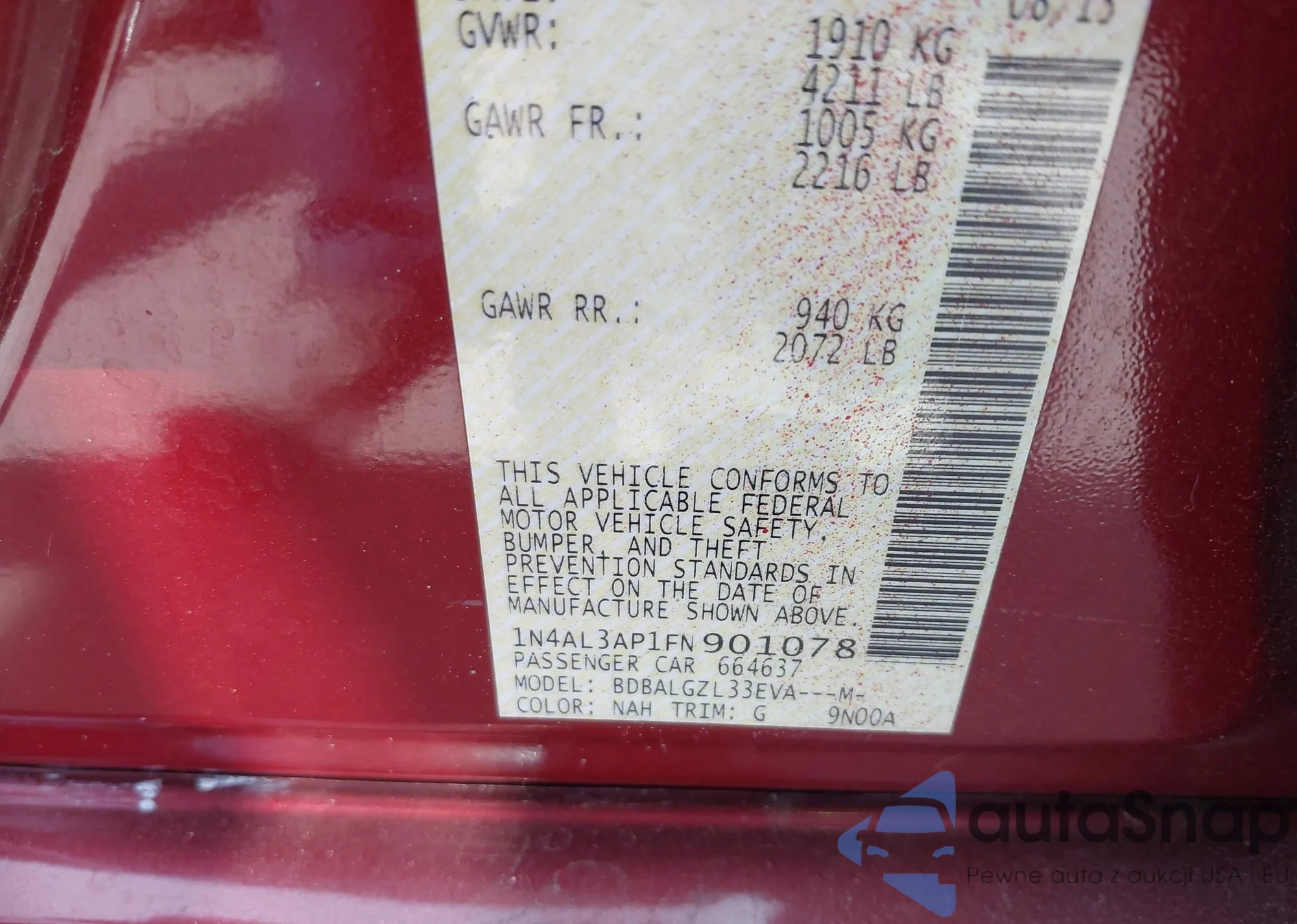 LOT: 42235930 VIN: 1N4AL3AP1FN901078