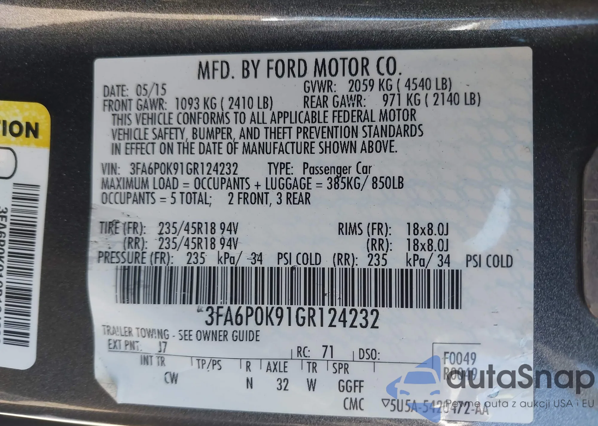 LOT: 42356169 VIN: KL4CJGSB6FB073737