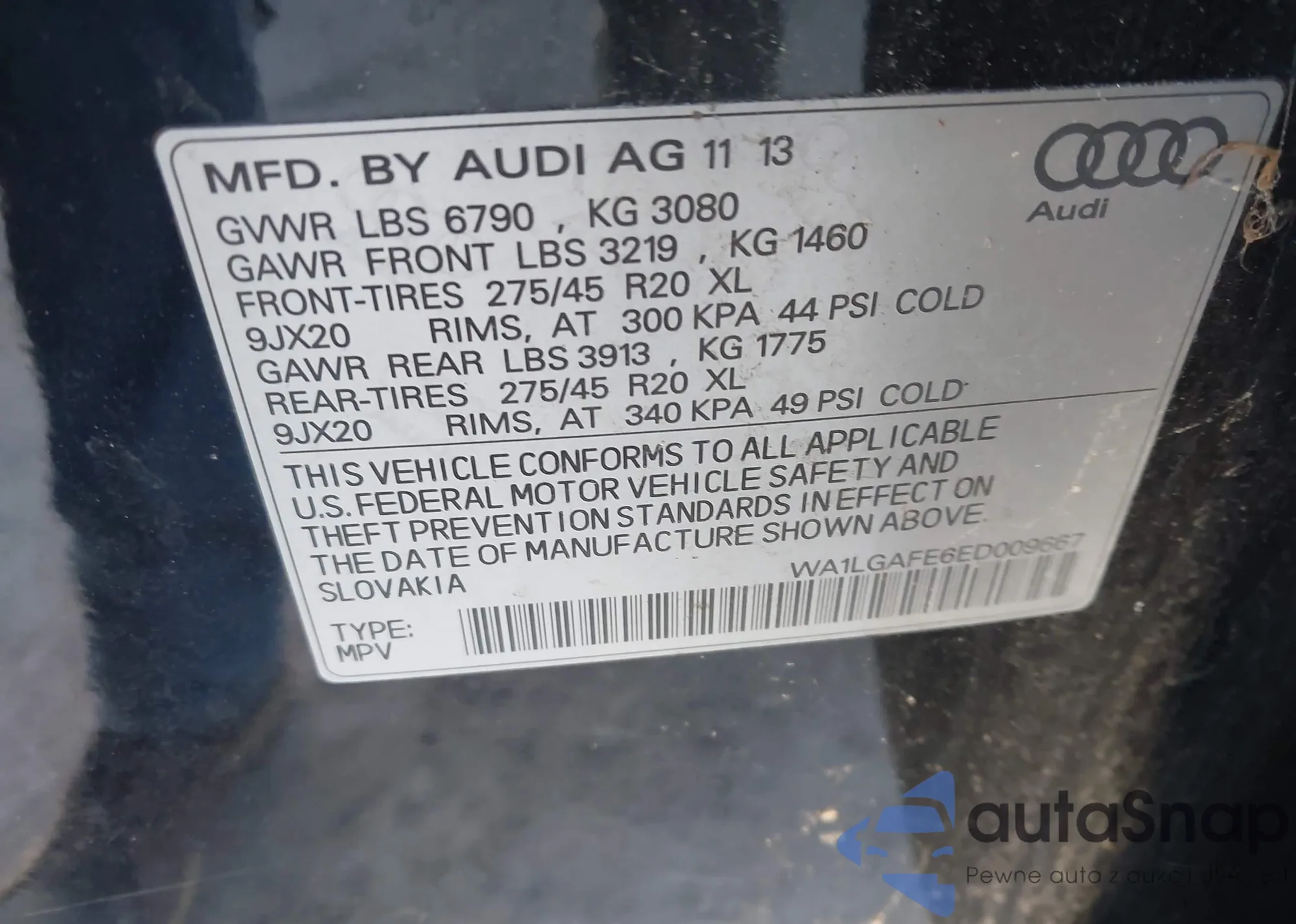 LOT: 41223115 VIN: WA1LGAFE6ED009667
