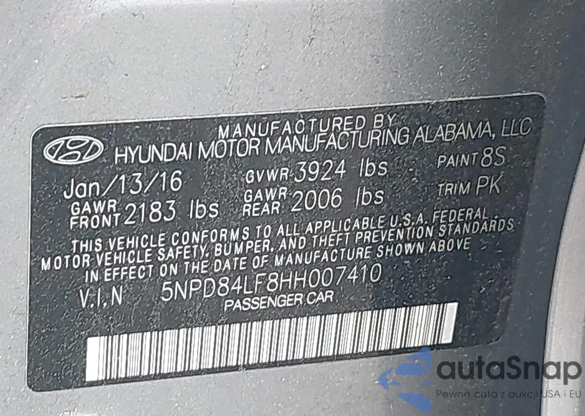 • VIN 5NPD84LF8HH007410