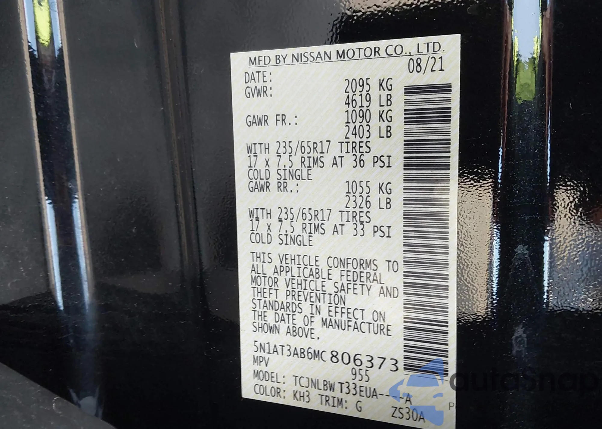 • VIN 5N1AT3AB6MC806373